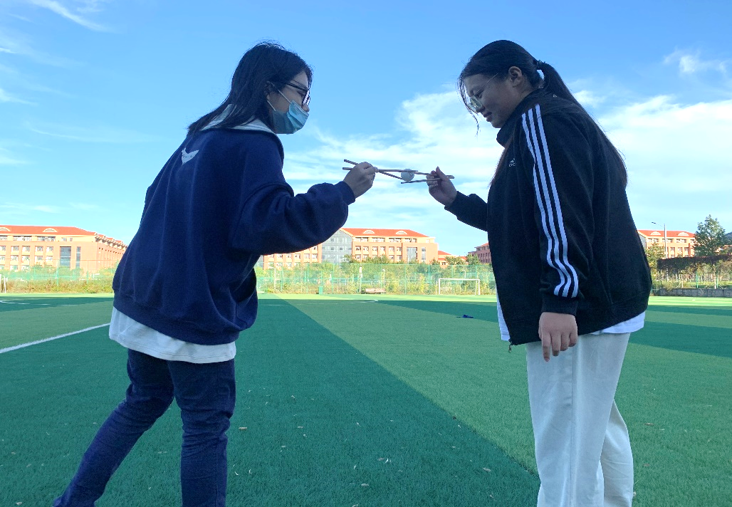 乒乓球接力看似簡單,但從夾起到入筐,“危險”無處不在。同學(xué)們在往返夾球的途中飛速奔跑,又在接力時回歸冷靜,以合適的力道將自己夾住的球送到同伴手中,體現(xiàn)了3班同學(xué)張弛有度,團(tuán)結(jié)一致的作風(fēng)。反手扔沙包項(xiàng)目主要考驗(yàn)2人的協(xié)調(diào)配合能力。當(dāng)一個個沙包在空中劃出迷人的拋物線,伴隨著“沙沙”的聲音進(jìn)入小桶,同學(xué)們臉上洋溢的無不是勝利的喜悅。