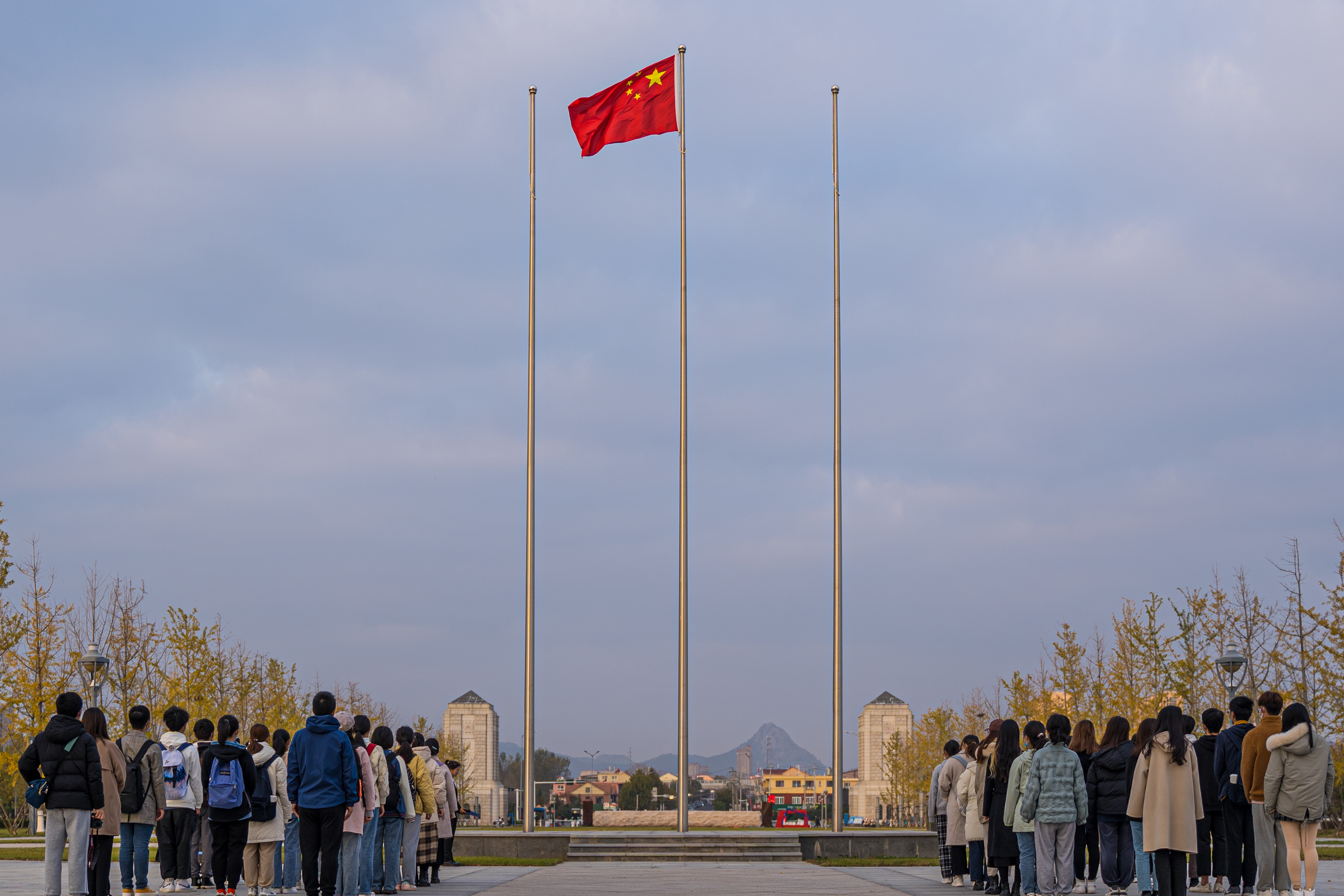 國旗在風(fēng)中飄揚,山東大學(xué)校歌也在此時唱響。最后的齊唱校歌環(huán)節(jié),展示了山大學(xué)子的意氣風(fēng)發(fā)、昂揚向上,“為天下儲人才,為國家圖富強”字句鏗鏘!