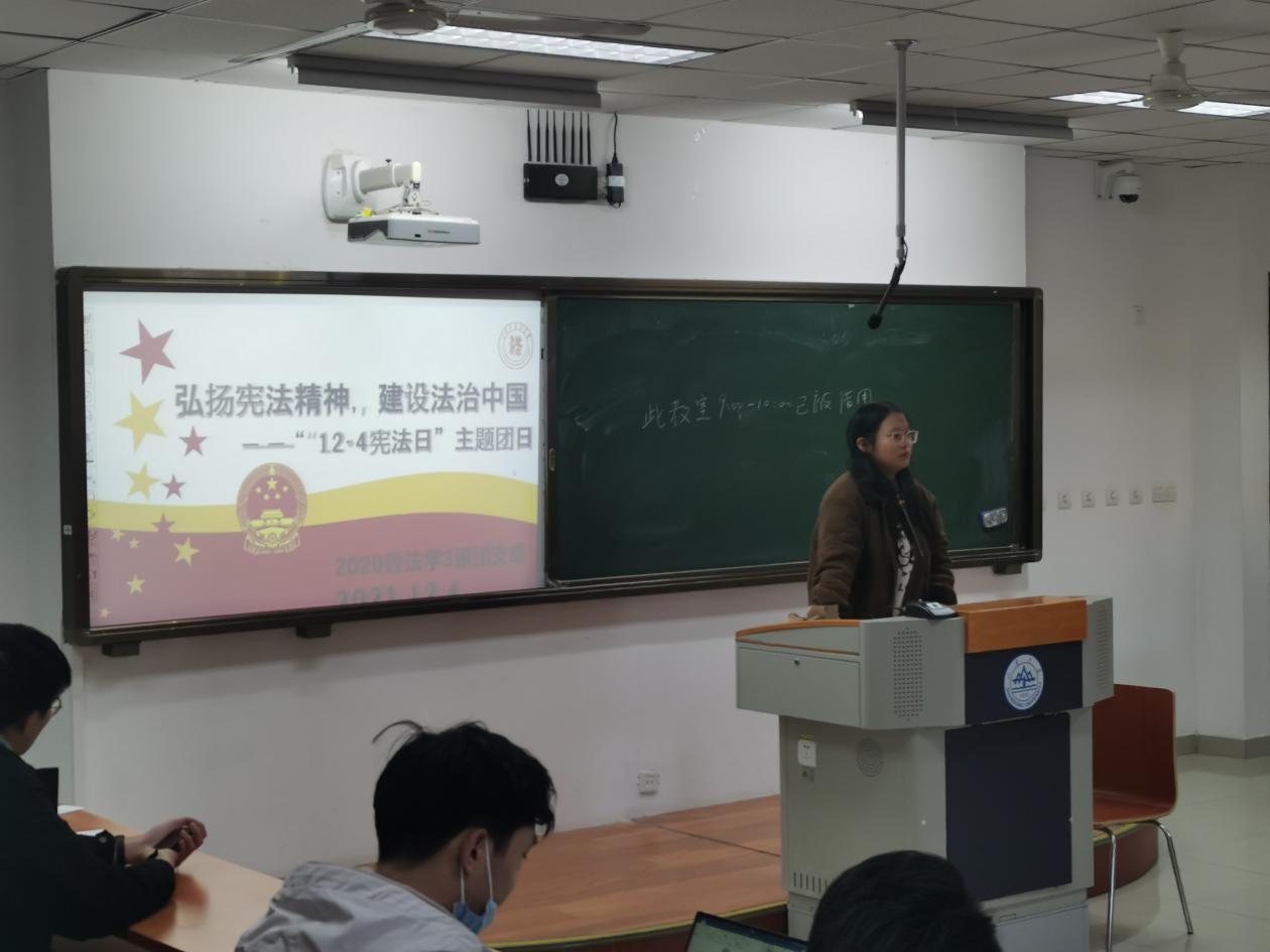 為深入學(xué)習(xí)習(xí)近平法治思想,全面貫徹落實(shí)黨的十九屆六中全會(huì)精神,多舉措學(xué)習(xí)憲法知識(shí),弘揚(yáng)憲法精神,在第八個(gè)國家憲法日來臨之際,2020級(jí)法學(xué)3班團(tuán)支部于12月4日開展了以“弘揚(yáng)憲法精神,建設(shè)法治中國”為主題的主題團(tuán)日活動(dòng)。