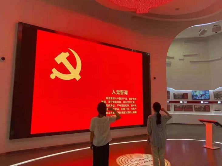 2021年8月23日, 團(tuán)隊(duì)成員來到青島市李滄區(qū)政治生活館參訪學(xué)習(xí)。實(shí)地參訪的黨員同志們佩戴黨徽,入場參觀,通過觀看紀(jì)錄片 不忘初心、牢記使命 短片來重溫中國共產(chǎn)黨光輝偉大的發(fā)展歷程。接著,在講解員的帶領(lǐng)下參觀了“不忘初心”、“弘揚(yáng)精神”、“錘煉黨性”、“爭當(dāng)表率”四大主題版塊,團(tuán)隊(duì)成員紛紛表示在中國共產(chǎn)黨的帶領(lǐng)下,偉大的中國人民艱苦卓絕、奮發(fā)圖強(qiáng),祖國不斷繁榮昌盛。同時,團(tuán)隊(duì)成員還于西柏坡舊址觀看紅色家書短片《牛犇的入黨故事》,感受中國共產(chǎn)黨員對共產(chǎn)黨最真摯、最淳樸的感情。最后,大家面向黨旗,在黨旗下莊嚴(yán)宣誓,回顧錚錚誓言,堅(jiān)定理想信念,牢記職責(zé)使命,重拾入黨初心。