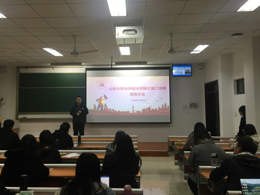 2020年11月20日19時,法學(xué)院法學(xué)碩士第二黨支部在振聲苑南樓102室舉行2020級新生入學(xué)來第一次黨支部大會,深入學(xué)習(xí)貫徹黨的十九屆五中全會精神。本次會議由黨支部書記高姮主持,支部黨員及預(yù)備黨員共同參加。