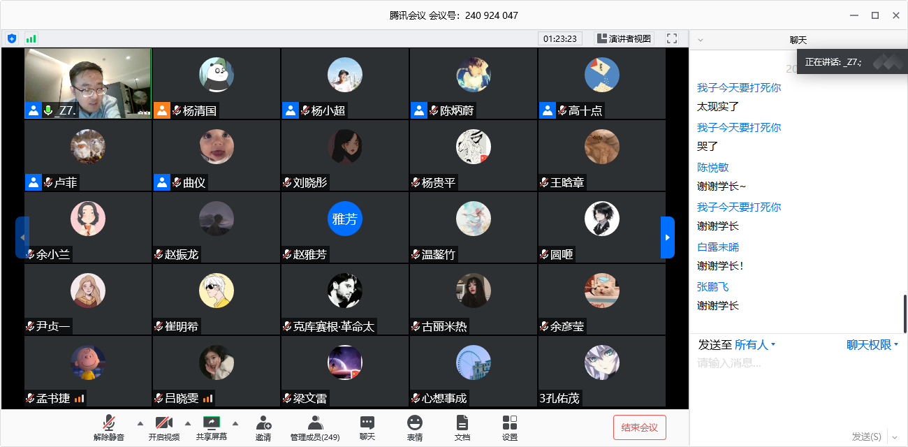 法學(xué)院2018級(jí)研究生、法學(xué)院校友工作室負(fù)責(zé)人陳炳蔚則向同學(xué)們講述了自己本科時(shí)期的創(chuàng)業(yè)經(jīng)驗(yàn)與感悟,還將校友工作中接觸到的優(yōu)秀校友的事跡分享給同學(xué)們。他建議同學(xué)們盡早確定大學(xué)生活的目標(biāo),給自己明確一個(gè)發(fā)展的方向并為之努力,在注重學(xué)業(yè)的同時(shí)多多參與實(shí)踐活動(dòng)以實(shí)現(xiàn)全方面發(fā)展,充實(shí)四年大學(xué)生活,收獲一段意義非凡的經(jīng)歷。此外,他還就考研、出國(guó)留學(xué)等方面的文通給同學(xué)們提供了一些建議。