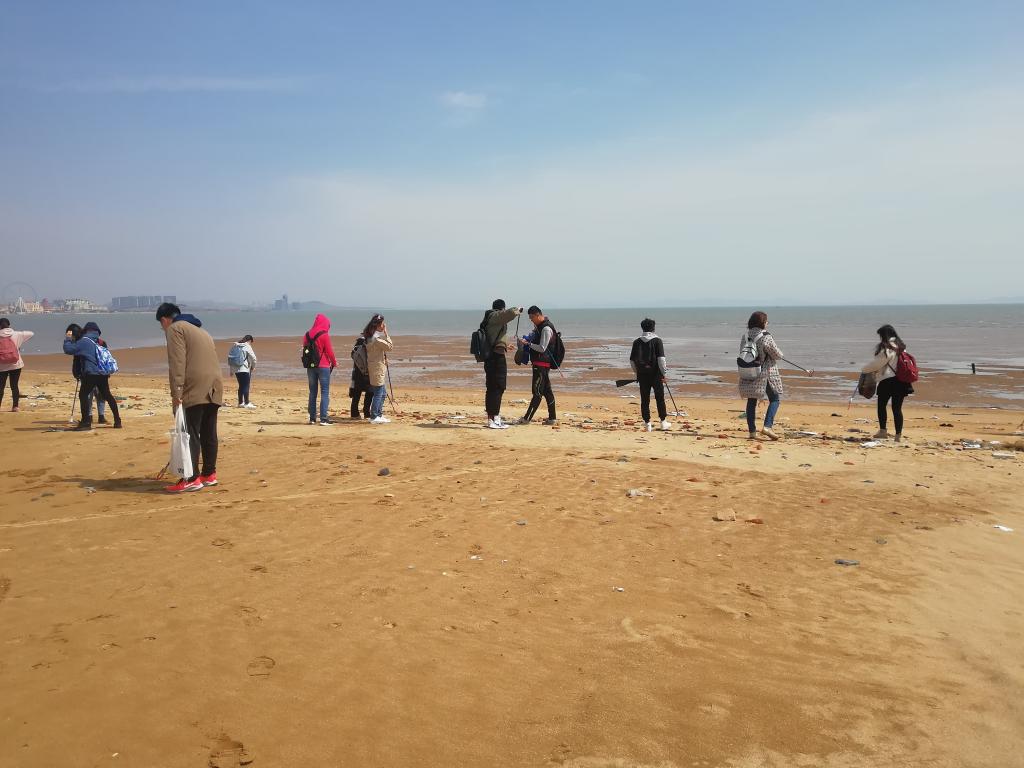 在團(tuán)支書胡甲婧的帶領(lǐng)下,參與此項(xiàng)志愿活動的全體成員都表現(xiàn)出了極高的熱情:他們胸前戴著團(tuán)徽,目光堅(jiān)定,精神抖擻,一手牽著垃圾袋,一手持著垃圾夾,一路朝著海邊走去。在路途中,只要遇到垃圾,無論大小,他們都會認(rèn)真地拾起,然后放入袋中;盡管陷在沙灘里的塑料袋因?yàn)楸缓K窕虮荒嗌彻酀M而顯得沉重,但他們都會想盡一切辦法把他們從沙灘上除去。經(jīng)過全體成員的不懈努力,原本被垃圾覆蓋的沙灘一下子恢復(fù)了昔日的干凈與美麗,山與沙與海與天交相輝映,共同勾勒出了一個(gè)真正風(fēng)景如畫的濱海公園。最后,為了紀(jì)念此次志愿活動的成果,全體成員帶著他們豐碩的“勞動成果”在海邊與團(tuán)旗、班旗合影。