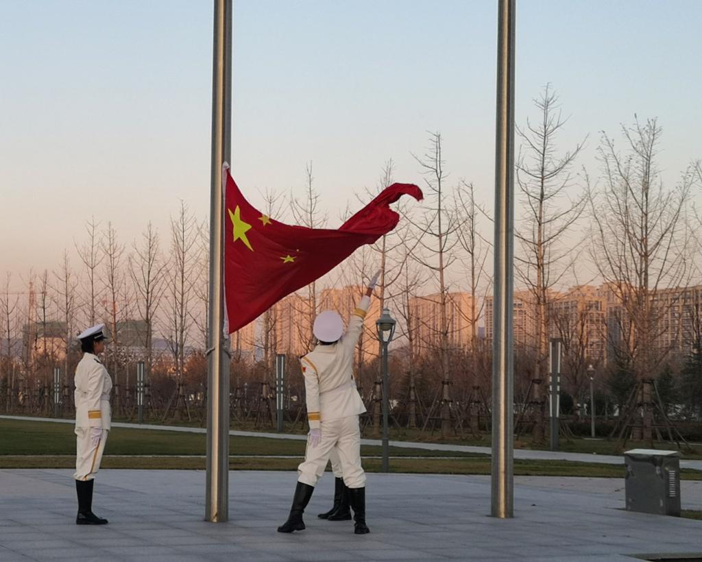 清晨七時整,在法學(xué)院師生代表的矚目下,國旗班正步走向升旗臺,他們昂首挺胸、身姿如松、步履堅定、氣勢如虹,護送五星紅旗入場,展現(xiàn)出山大青年的精神風(fēng)貌。鮮艷的五星紅旗伴隨著初升的朝陽與莊嚴(yán)的國歌冉冉升起,全場師生行注目禮,場面莊重肅穆。