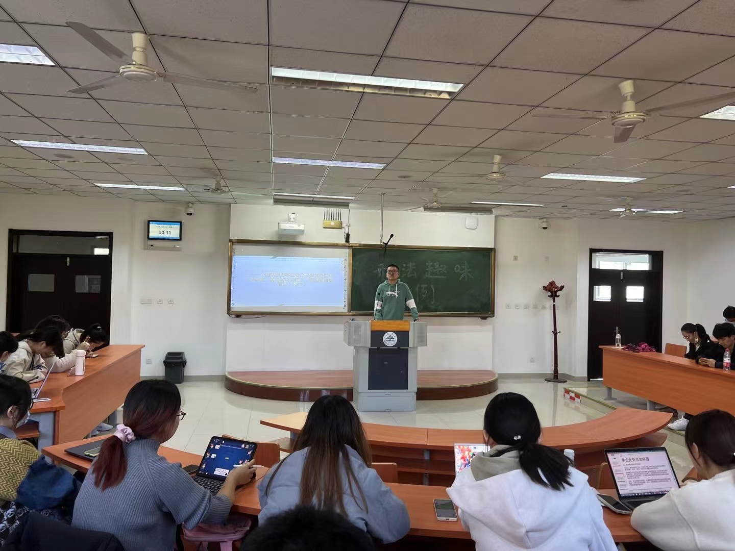 然后,陳呈龍同學(xué)就公民的政治權(quán)利的種類進(jìn)行了講解,并對其中的疑難問題進(jìn)行了解答。他通過一個經(jīng)典案例幫助大家辨析著作權(quán)和出版自由的關(guān)系,大家相互探討,從中學(xué)習(xí)體悟,對公民的政治權(quán)利有了進(jìn)一步的認(rèn)識。