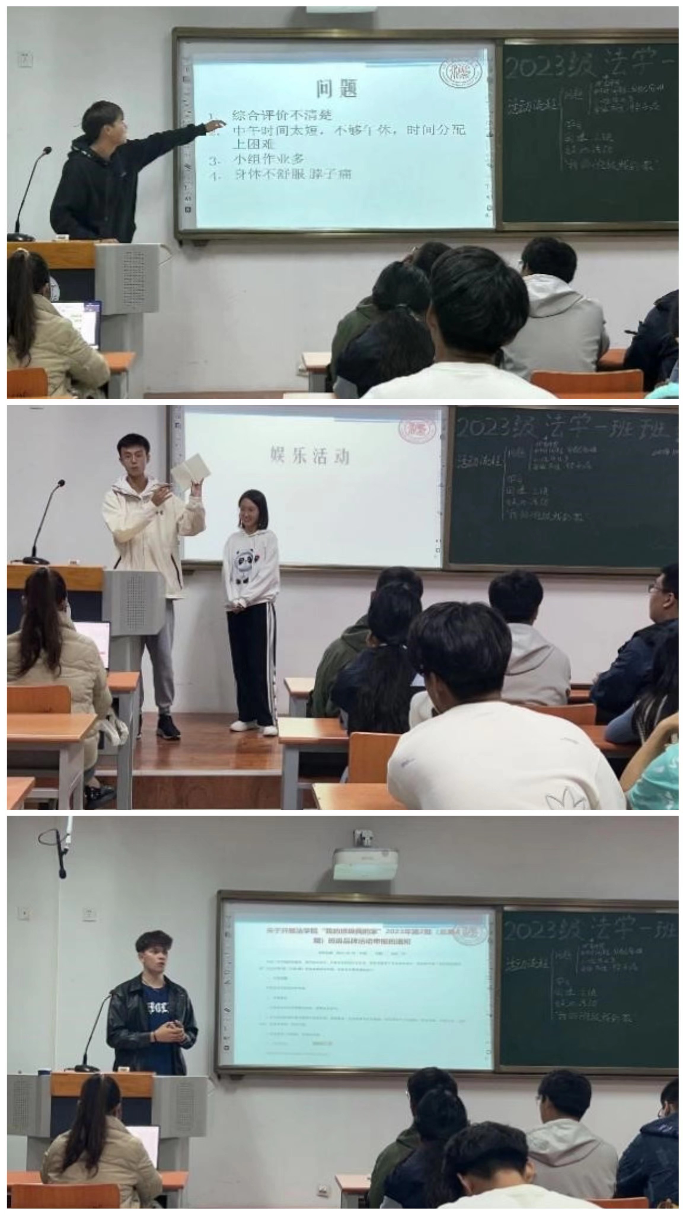 2023年10月27日,為促進(jìn)班級內(nèi)同學(xué)互相認(rèn)識、提高班級凝聚力,一班組織了一場破冰班會,特邀請2022級一班學(xué)姐馬沛然針對同學(xué)們開學(xué)以來遇到的疑難問題和學(xué)習(xí)困惑進(jìn)行了解答,并且組織了豐富有趣的小游戲。這些舉措讓同學(xué)們對未來的大學(xué)生活中如何規(guī)劃學(xué)習(xí)生活、如何處理人際關(guān)系等方面有了進(jìn)一步的認(rèn)識,促使同學(xué)們多元認(rèn)識大學(xué)旅程,更好適應(yīng)大學(xué)生活。