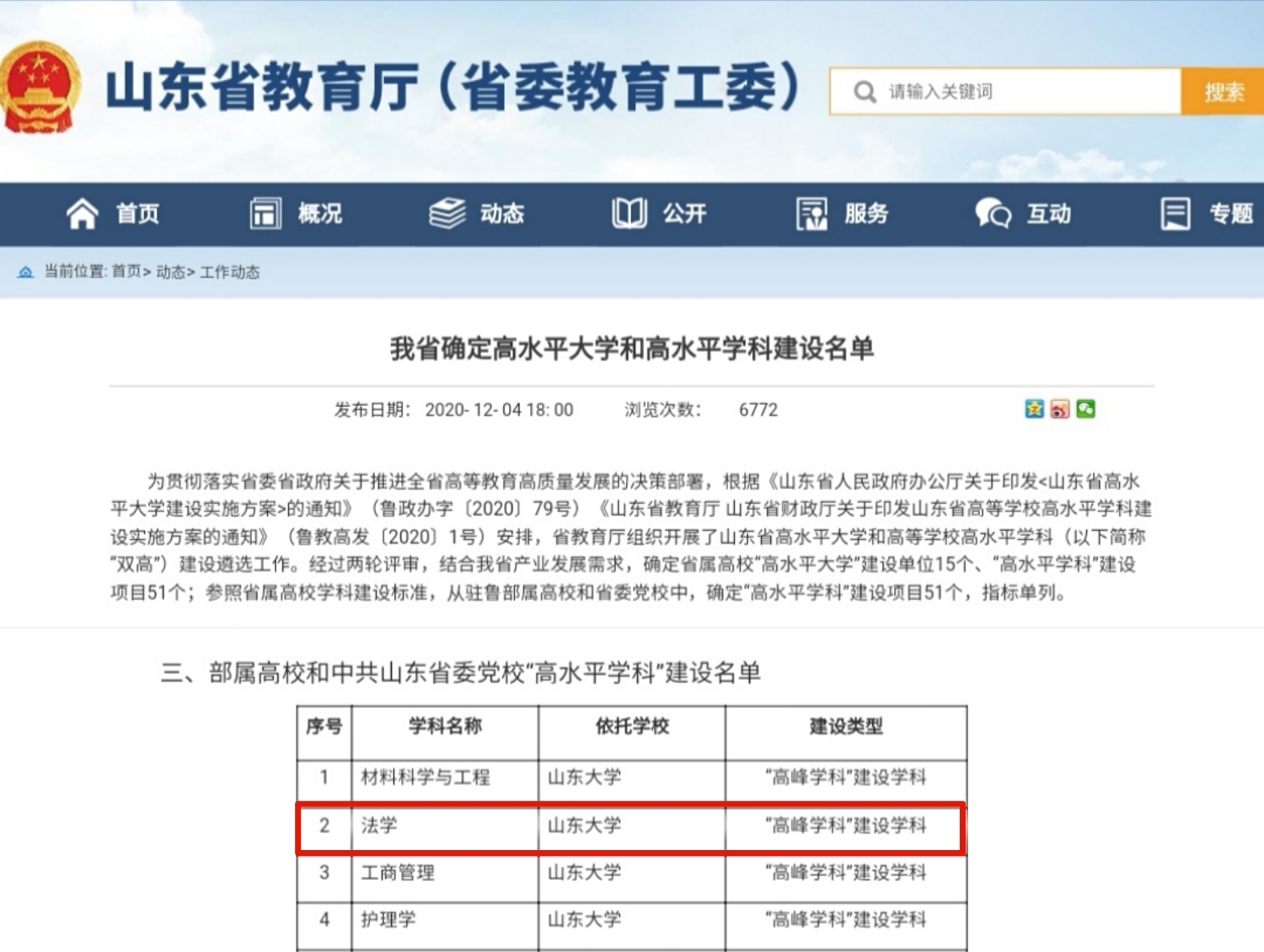 2020年12月,入選山東省”高峰學科“建設(shè)學科。