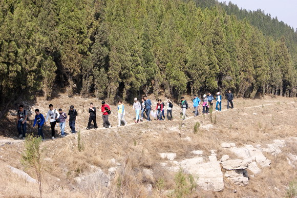 陽春三月,天氣晴朗,一行人的歡聲笑語在山間流轉(zhuǎn)激蕩。在老師的帶領(lǐng)下,同學(xué)們有序地行走在山間,中途休息時(shí),老師同學(xué)們?nèi)宄扇海涣鲗W(xué)習(xí)心得、學(xué)習(xí)方法,課程內(nèi)容、生活經(jīng)驗(yàn)等各方面話題。交流縮短了老師同學(xué)間的距離,也增加了同學(xué)們對(duì)老師的了解。
