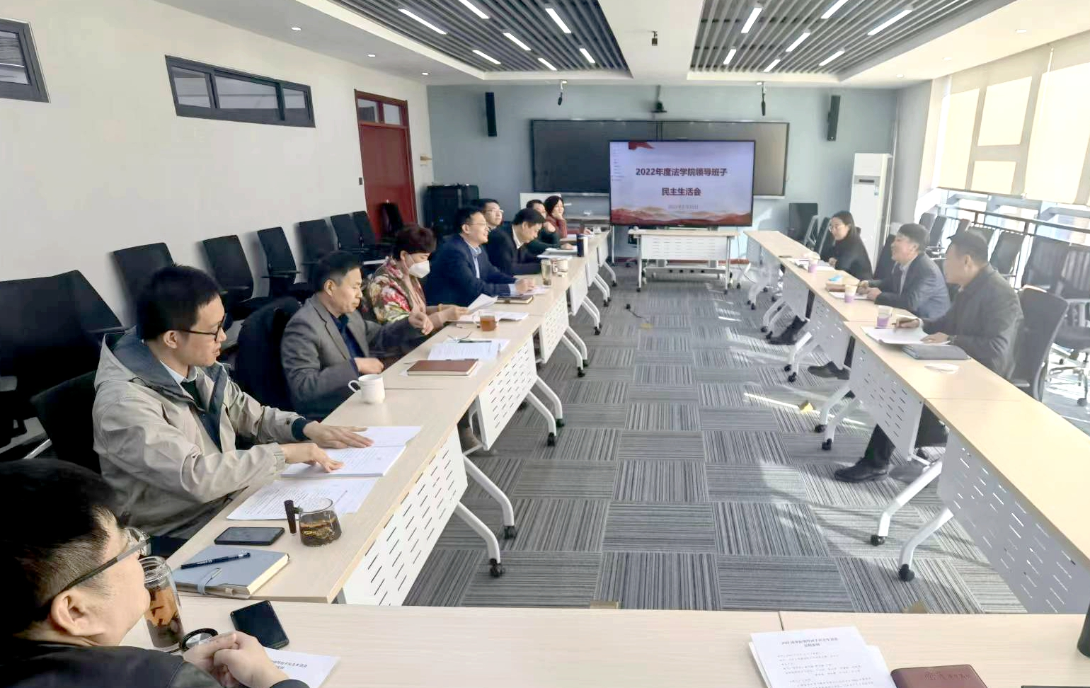 2月15日下午,法學(xué)院召開(kāi)2022年度領(lǐng)導(dǎo)班子民主生活會(huì)。學(xué)校黨委第十一指導(dǎo)組組長(zhǎng)蓋玉強(qiáng)、副組長(zhǎng)顧乃靜,成員王君到會(huì)指導(dǎo)。法學(xué)院黨委書(shū)記于向明主持會(huì)議,學(xué)院領(lǐng)導(dǎo)班子全體成員參加會(huì)議。