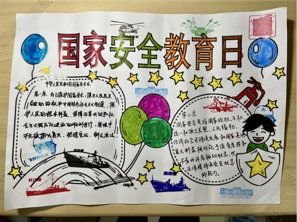在海軍博物館,師生們先后參觀了第一展廳——社會主義革命和建設時期、第二展廳——改革開放和社會主義現(xiàn)代化建設新時期、第三、四展廳——社會主義新時代。全景式的展現(xiàn)讓同學們深入了解了人民海軍從創(chuàng)建到發(fā)展,從淺藍走向深藍的光輝歷程,人民海軍偉大的革命、戰(zhàn)斗意志和愛黨、愛國的光榮傳統(tǒng)深入人心。參觀期間,部分同學還參與了博物館舉辦的國家安全教育日手抄報繪畫活動,真切表達自己的愛國熱情。