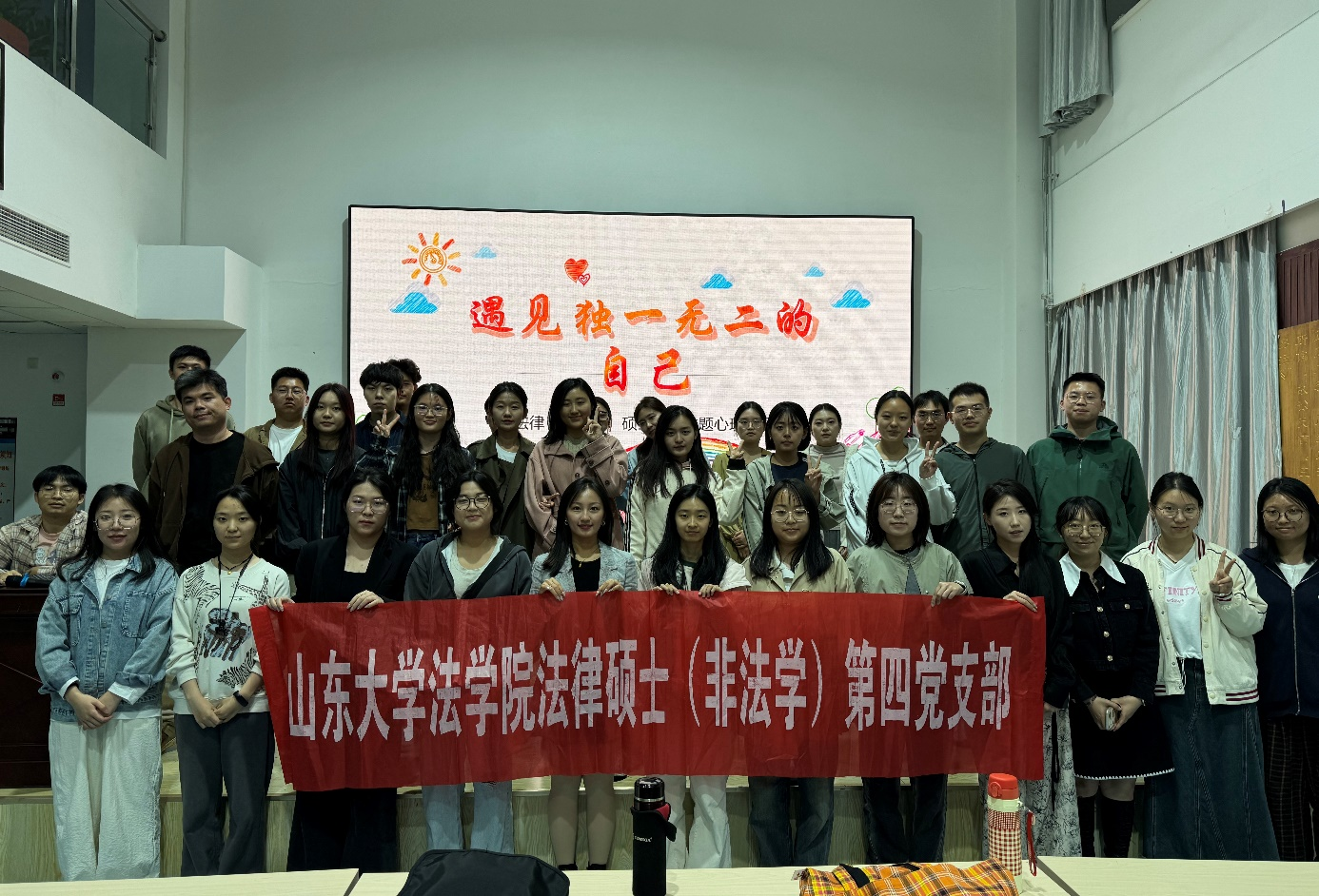 為進(jìn)一步提升心理健康素養(yǎng),引導(dǎo)同學(xué)關(guān)注自身心理健康和心靈成長(zhǎng),5月13日晚,2023級(jí)法律(非法學(xué))碩士二班與法律碩士(非法學(xué))第四黨支部開展“遇見獨(dú)一無二的自己”心理健康教育主題班會(huì),40余名班級(jí)同學(xué)參加活動(dòng)。