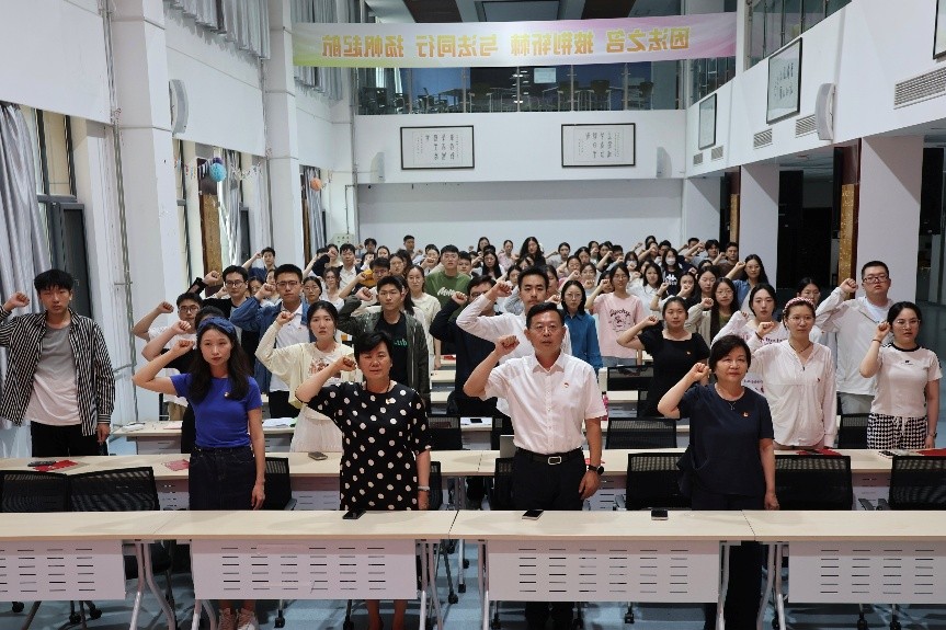 6月20日,為進(jìn)一步加強(qiáng)黨性教育,引導(dǎo)新發(fā)展黨員增強(qiáng)責(zé)任感和使命感,鼓勵(lì)全體畢業(yè)生黨員以良好的精神風(fēng)貌踏入新的征程,法學(xué)院舉行2025年新黨員入黨宣誓暨畢業(yè)生黨員重溫入黨誓詞活動(dòng)。法學(xué)院黨委書記于向明、黨委副書記董雪梅、副處級(jí)組織員江小荃及法學(xué)院百余名新老黨員參加活動(dòng)。活動(dòng)由法學(xué)碩士第一黨支部李芮瑩主持。