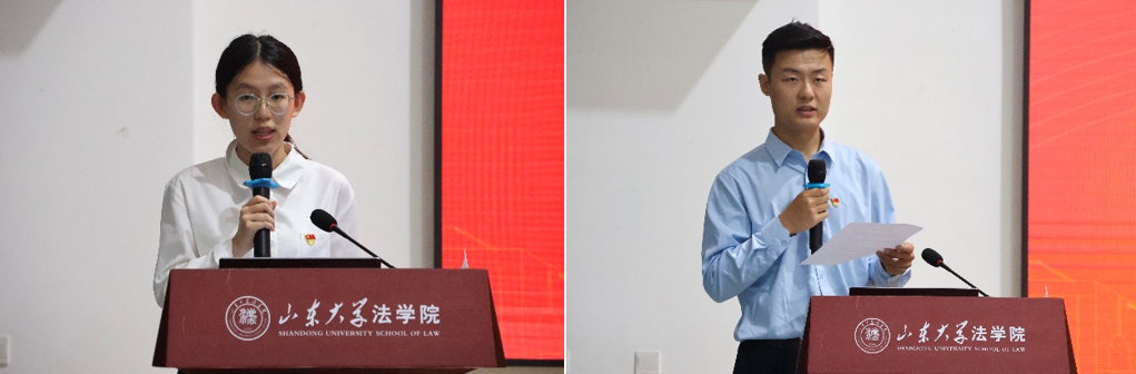 2023級(jí)本科生程靖壹、2022級(jí)碩士研究生譚翊博分別作為新黨員和畢業(yè)生黨員代表發(fā)言,表示將以身作則,踐行對(duì)黨承諾,并勉勵(lì)全體法學(xué)學(xué)子永葆初心,聽(tīng)黨話、跟黨走。