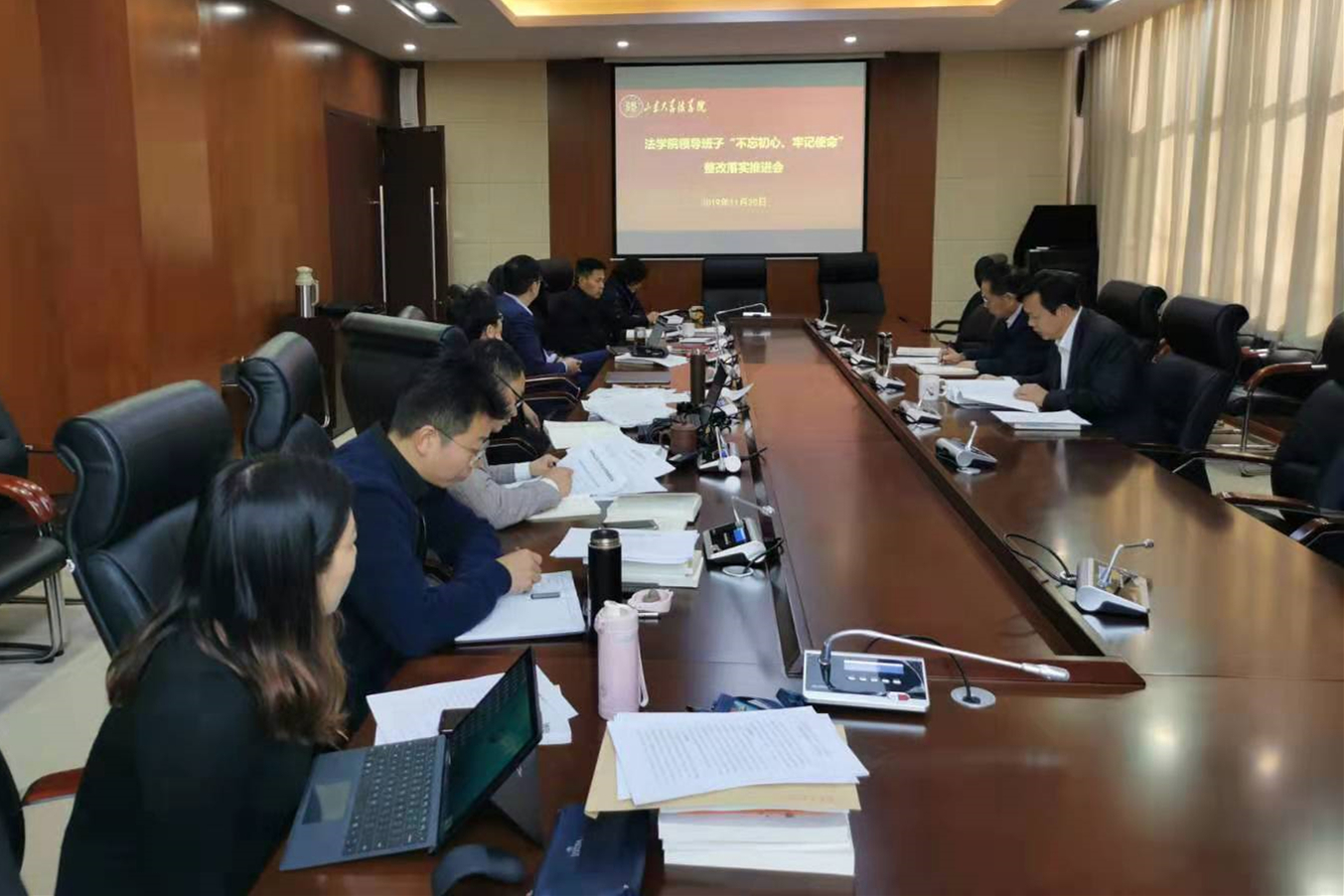 11月20日下午,學(xué)院召開(kāi)“不忘初心、牢記使命”主題教育第六次集中學(xué)習(xí)研討會(huì)和整改落實(shí)推進(jìn)會(huì),法學(xué)院黨委委員、主題教育領(lǐng)導(dǎo)小組和工作小組成員參加了會(huì)議,會(huì)議由青島校區(qū)黨工委副書(shū)記、紀(jì)工委書(shū)記、法學(xué)院黨委書(shū)記杜言敏主持。