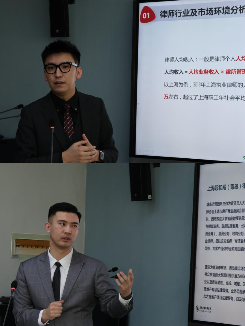 王楠在介紹了自己所在團(tuán)隊(duì)的情況后,就法學(xué)生的職業(yè)選擇、青島實(shí)習(xí)律師的現(xiàn)狀進(jìn)行了分享。他介紹道,律所分為提成制律所和公司制律所,二者的主要區(qū)別在于業(yè)務(wù)收入和分配方式,且入所后的發(fā)展路徑不同。關(guān)于實(shí)習(xí)律師與獨(dú)立律師,王楠認(rèn)為獨(dú)立律師需要有更強(qiáng)的自驅(qū)力、執(zhí)行力和責(zé)任心,要從團(tuán)隊(duì)的客戶中鍛煉出業(yè)務(wù)能力,重視工作中的反饋和復(fù)盤。