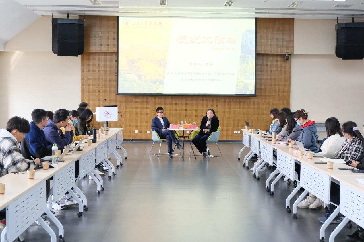 作為一位“純正的山大人”和“金杜律師事務(wù)所的第一位山大人”,徐靜校友分享了自己就讀于山大的感受,講述了在山大求學(xué)期間感受到的樸實(shí)濃厚的學(xué)風(fēng)、廣泛的理論知識(shí)、扎實(shí)的專(zhuān)業(yè)基礎(chǔ)以及優(yōu)秀的法律素養(yǎng),鼓勵(lì)大家要在學(xué)好專(zhuān)業(yè)知識(shí)的基礎(chǔ)上,抓住實(shí)踐機(jī)會(huì),注重專(zhuān)業(yè)技能學(xué)習(xí),鍛煉法律思維與思辨能力,如此方能在法律的道路上行高致遠(yuǎn)。