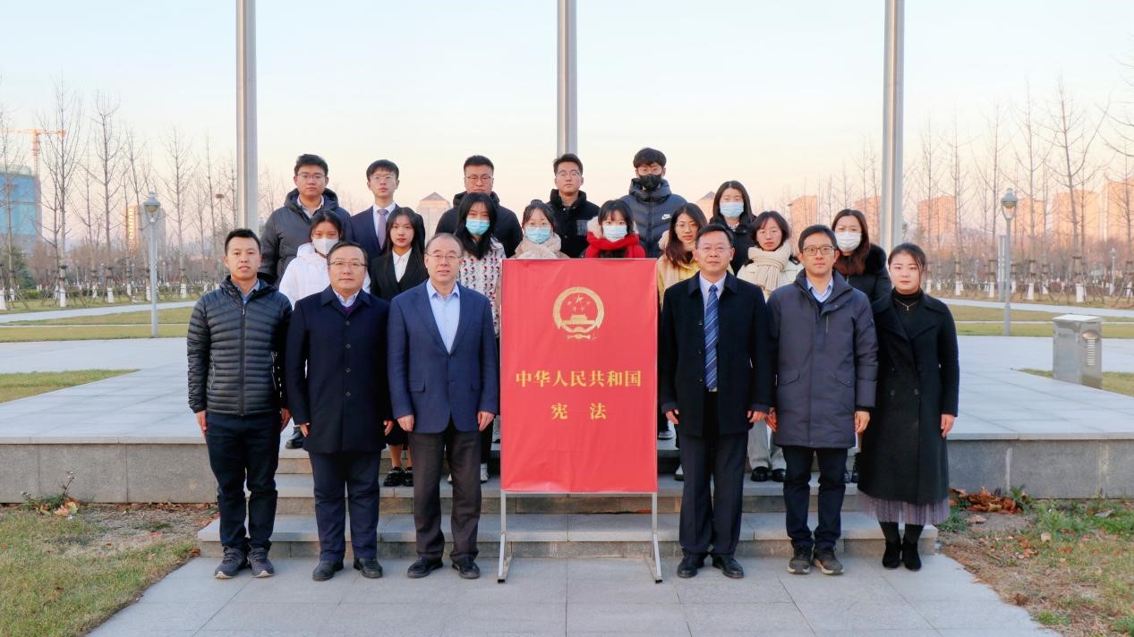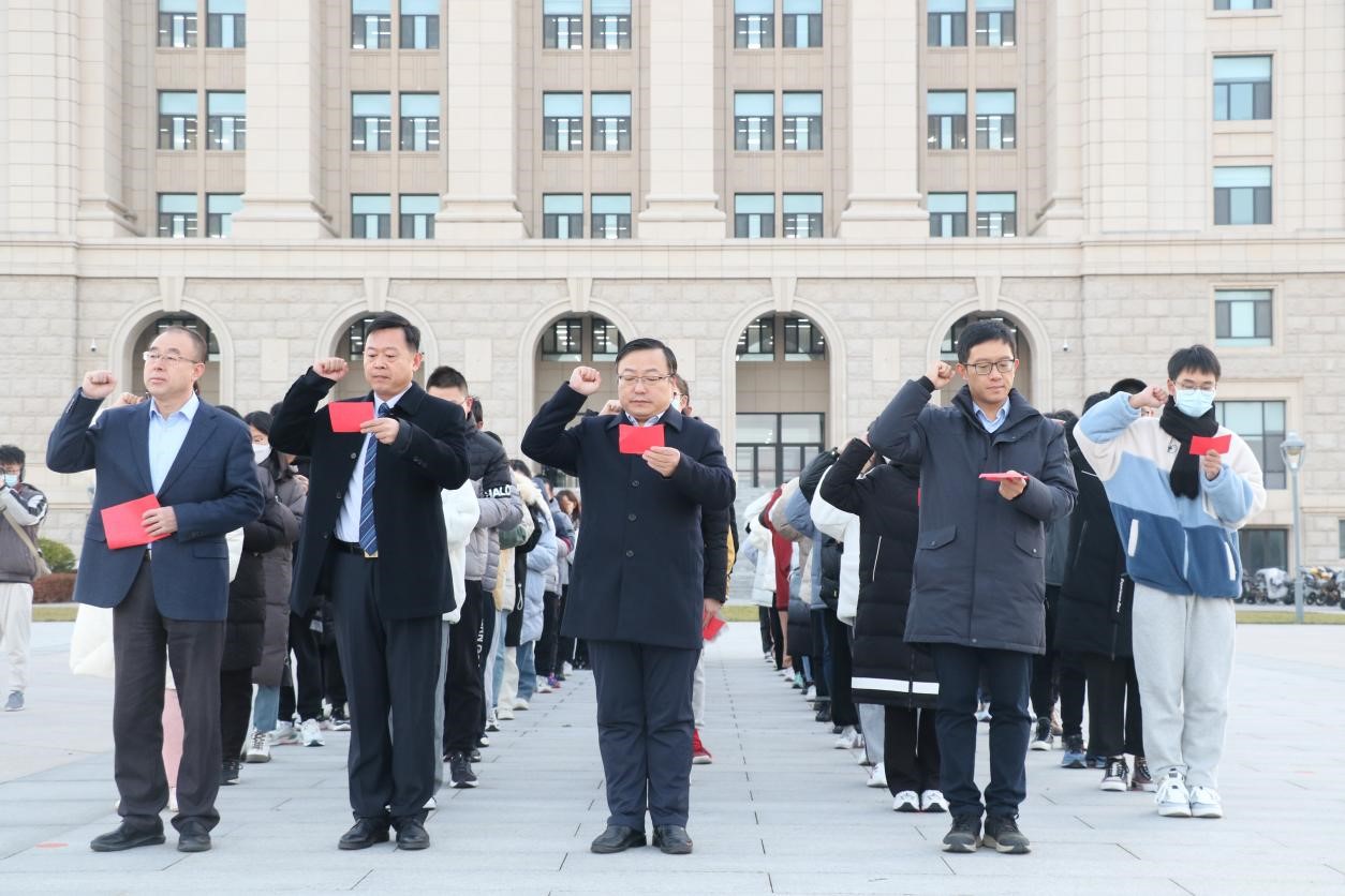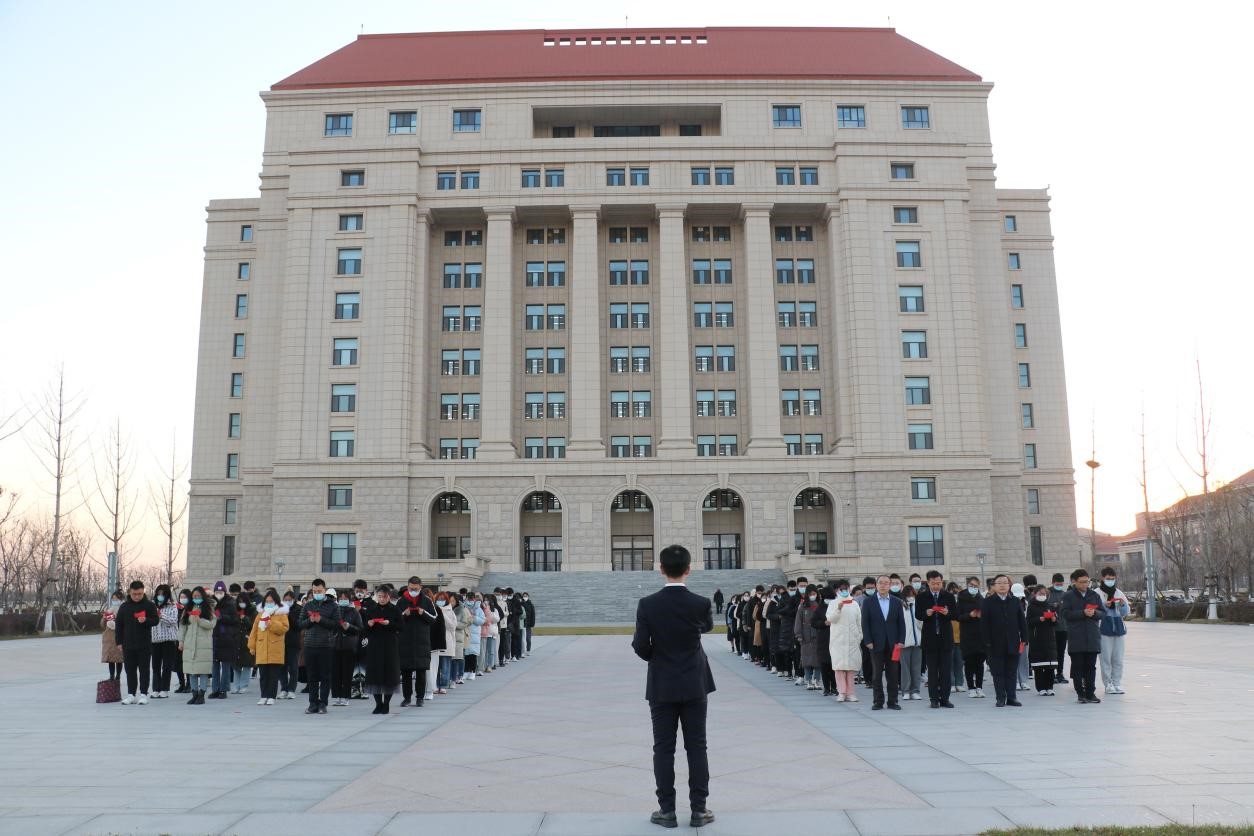 2021年12月4日,在第八個(gè)國(guó)家憲法日到來(lái)之際,山東大學(xué)青島校區(qū)在育賢廣場(chǎng)舉行國(guó)家憲法日升旗儀式。師生們?cè)趪?guó)旗下進(jìn)行憲法宣誓、誦讀憲法條文。青島校區(qū)黨工委副書(shū)記郭邦禮、法學(xué)院黨委書(shū)記于向明、校區(qū)學(xué)生工作部副部長(zhǎng)李海燕、法學(xué)院黨委副書(shū)記鄒永厚及師生代表100余人參加了活動(dòng)。