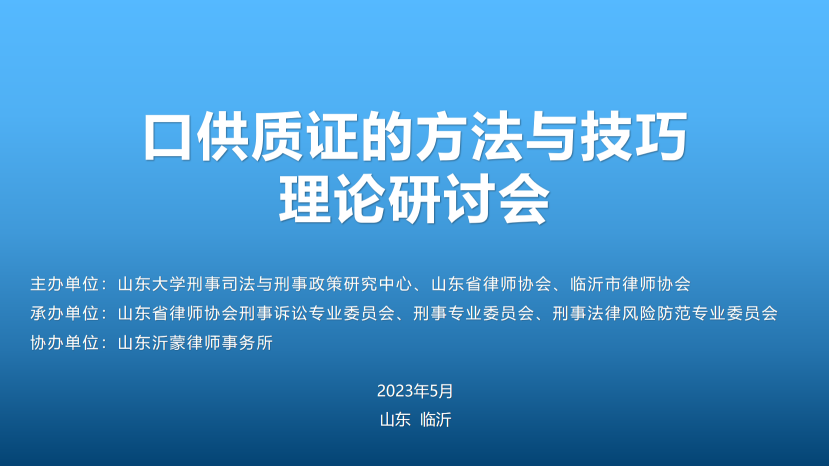 為貫徹落實(shí)黨的二十大法治建設(shè)目標(biāo)和任務(wù),推動(dòng)完善“以審判為中心”的訴訟制度改革,提高刑事辯護(hù)能力和律師的執(zhí)業(yè)水平,由山東省律師協(xié)會(huì)、山東大學(xué)刑事司法與刑事政策研究中心和臨沂市律師協(xié)會(huì)聯(lián)合主辦,山東省律師協(xié)會(huì)刑事訴訟專業(yè)委員會(huì)、刑事專業(yè)委員會(huì)和刑事法律風(fēng)險(xiǎn)防范專業(yè)委員會(huì)承辦,山東沂蒙律師事務(wù)所協(xié)辦的“口供質(zhì)證方法與技巧”理論研討會(huì)于2023年5月13日在山東省沂南縣召開。