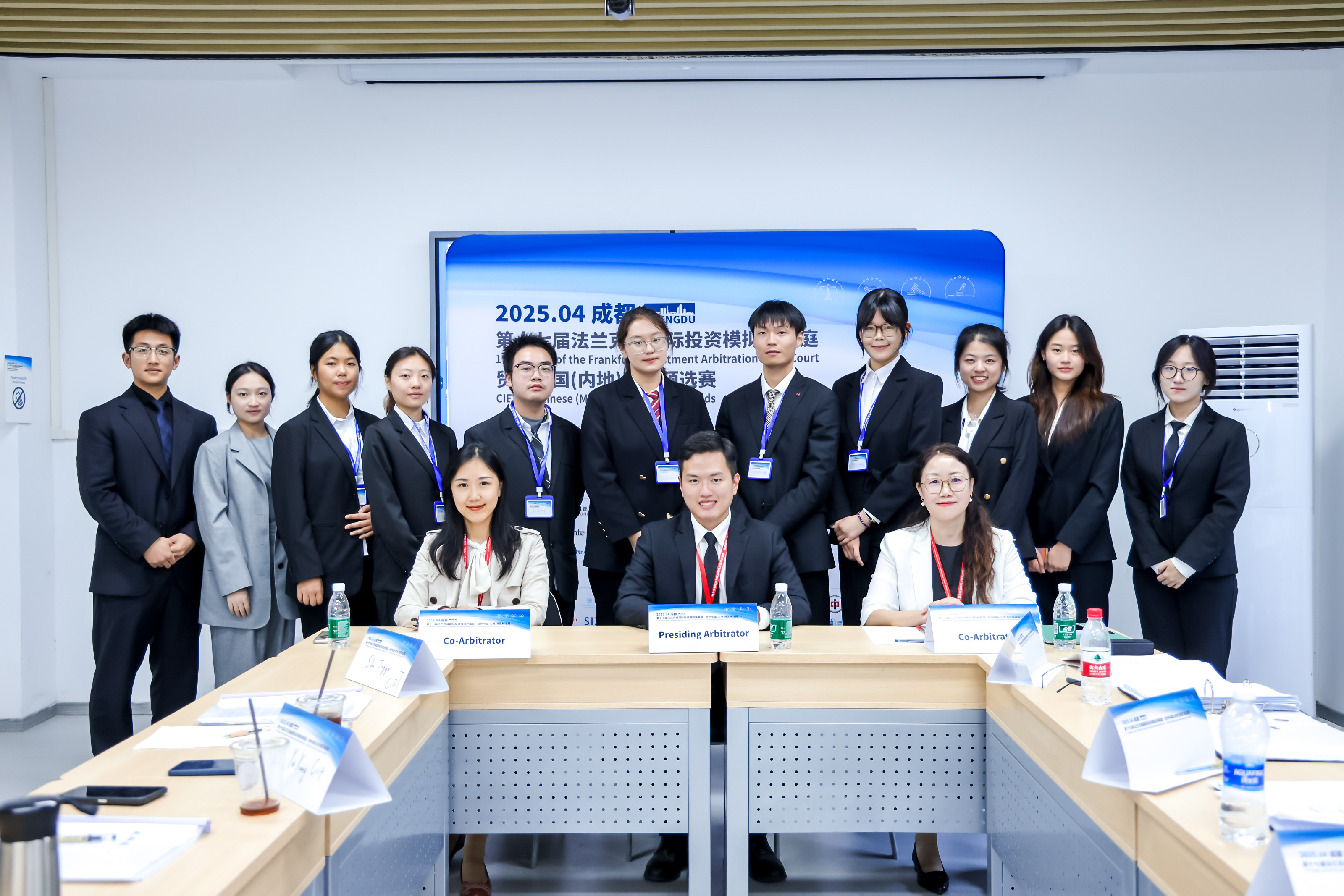 我校代表隊(duì)由法學(xué)院向力副教授擔(dān)任指導(dǎo)教師,黃揚(yáng)擔(dān)任學(xué)生教練與隊(duì)長(zhǎng),2020級(jí)本科生黃雅冰、2022級(jí)本科生楊亞潼、2022級(jí)本科生賀立妍擔(dān)任庭辯員,2023級(jí)本科生楊小鋒擔(dān)任研究員。賽隊(duì)于2025年2月組建后,在短短1個(gè)多月的備賽時(shí)間里,集中研討了雙邊投資協(xié)定日落條款、仲裁庭管轄權(quán)、“岔路口”條款、警察權(quán)理論、“保護(hù)傘”條款、賠償計(jì)算方法、信息披露、仲裁員資格等國(guó)際投資法領(lǐng)域的九個(gè)前沿問(wèn)題,進(jìn)行了大量法律檢索和多次模辯練習(xí),對(duì)每一個(gè)可能出現(xiàn)的法律問(wèn)題進(jìn)行了細(xì)致研究。在緊張的賽程面前,隊(duì)員們?cè)谡愅マq中展現(xiàn)出了卓越的法律素養(yǎng)、出色的陳述技巧、冷靜的心理素質(zhì)和默契的團(tuán)隊(duì)協(xié)作,贏得了仲裁員的一致認(rèn)可。