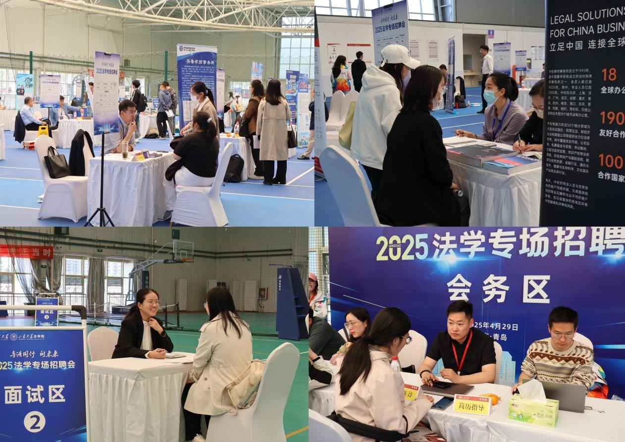 為貫徹落實(shí)黨中央、國(guó)務(wù)院和山東大學(xué)關(guān)于高校畢業(yè)生就業(yè)工作的決策部署,搭建用人單位與畢業(yè)生之間的信息溝通橋梁,促進(jìn)畢業(yè)生高質(zhì)量充分就業(yè),山東大學(xué)法學(xué)院于4月29日在青島校區(qū)舉辦2025法學(xué)專(zhuān)場(chǎng)招聘會(huì)。
