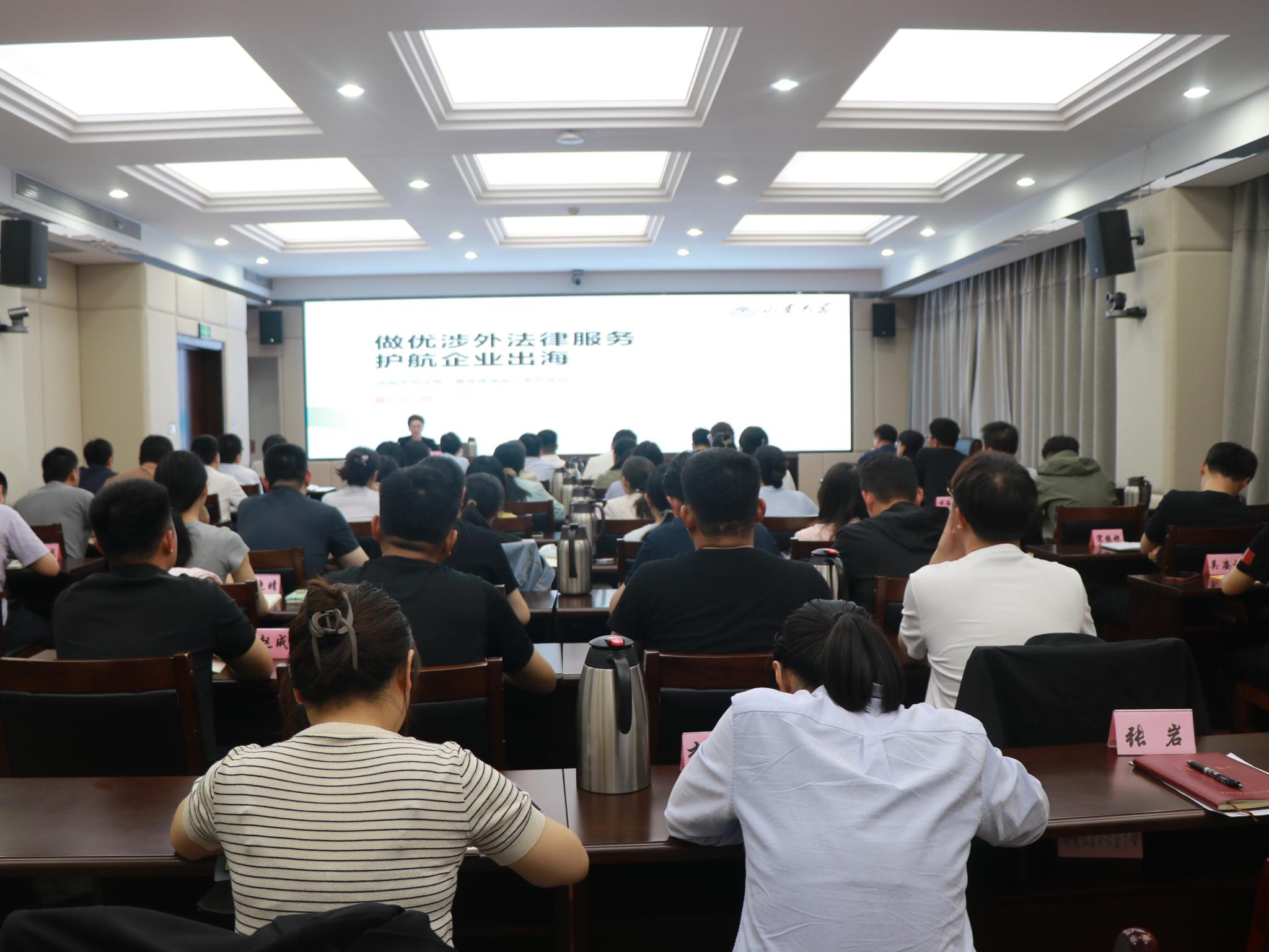 5月14日,濟(jì)南市司法局組織開展“青年夜學(xué)會”活動,法學(xué)院副教授張蓓蓓應(yīng)邀授課,作題為《做優(yōu)涉外法律服務(wù),護(hù)航企業(yè)出海》的專題報告。活動由濟(jì)南市司法局組織人事處主要負(fù)責(zé)同志主持,機(jī)關(guān)各處室40歲以下青年干部參加。