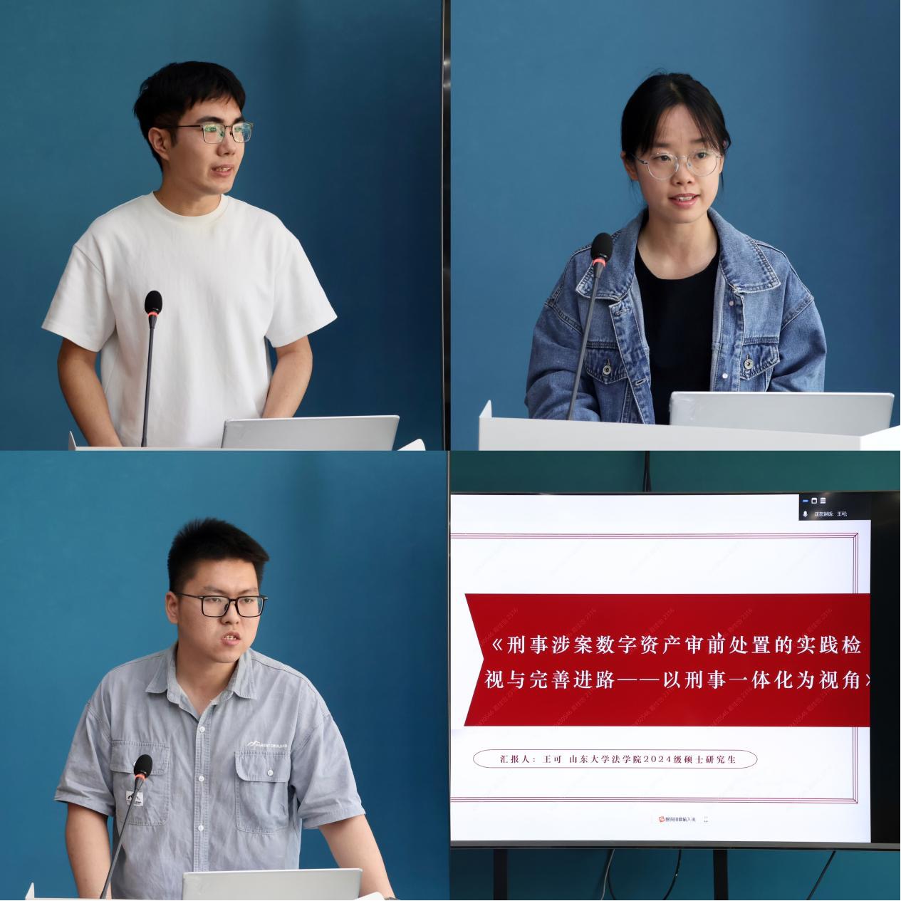 隨后,法學(xué)院2024級碩士研究生王可,2023級碩士研究生蔡可潤、李倩倩、王林四位獲獎(jiǎng)同學(xué)代表依次對文章內(nèi)容進(jìn)行匯報(bào),分享了各自的寫作心得與參賽感受。他們從不同角度闡述研究成果,展現(xiàn)了對法學(xué)問題的深入思考與獨(dú)特見解,為在場同學(xué)提供了寶貴的寫作經(jīng)驗(yàn)與研究思路。