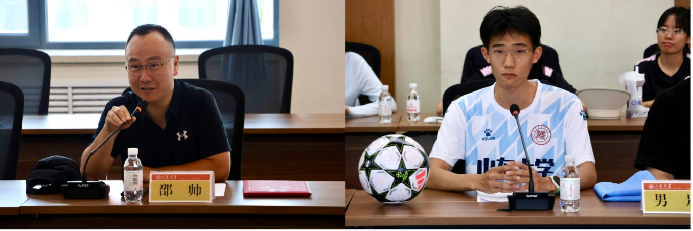 交流環(huán)節(jié)中,指導(dǎo)教師代表、海洋研究院教師邵帥結(jié)合自身多年投身足球運(yùn)動(dòng)的經(jīng)驗(yàn)與感悟,分享心得體會(huì),希望同學(xué)們以安全為先、以快樂(lè)為本,在體育競(jìng)技中頑強(qiáng)拼搏、銳意進(jìn)取。法學(xué)院男子足球隊(duì)隊(duì)長(zhǎng)、2024級(jí)本科生范逸濠代表全體運(yùn)動(dòng)員發(fā)言,表示將在俱樂(lè)部中積極投入訓(xùn)練,秉持體育精神,共同為取得更加優(yōu)異的成績(jī)而奮斗。