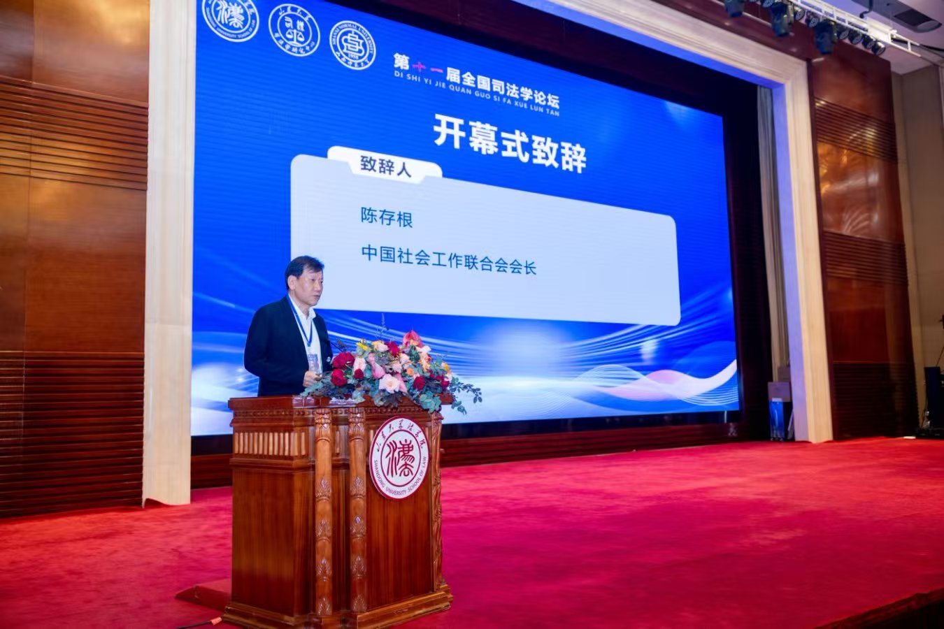 中國(guó)社會(huì)工作聯(lián)合會(huì)會(huì)長(zhǎng)陳存根在致辭中對(duì)受邀參加第十一屆全國(guó)司法學(xué)論壇表示感謝。他強(qiáng)調(diào),司法社會(huì)工作作為社會(huì)工作的傳統(tǒng)重要分支,是創(chuàng)新社會(huì)治理、促進(jìn)社會(huì)和諧的重要力量,在司法現(xiàn)代化進(jìn)程中可發(fā)揮重要作用。司法社會(huì)工作能夠架起司法體系與社會(huì)服務(wù)的橋梁,是創(chuàng)新社會(huì)治理的重要抓手,能夠從源頭上預(yù)防和減少違法犯罪,促進(jìn)社會(huì)和諧穩(wěn)定,其是完善社會(huì)治理體系的必然要求,是踐行習(xí)近平法治思想的重要舉措。同時(shí),他指出,近年來(lái)我國(guó)司法社會(huì)工作雖已取得長(zhǎng)足發(fā)展,但仍面臨制度體系不全、專業(yè)人才缺乏等問(wèn)題。