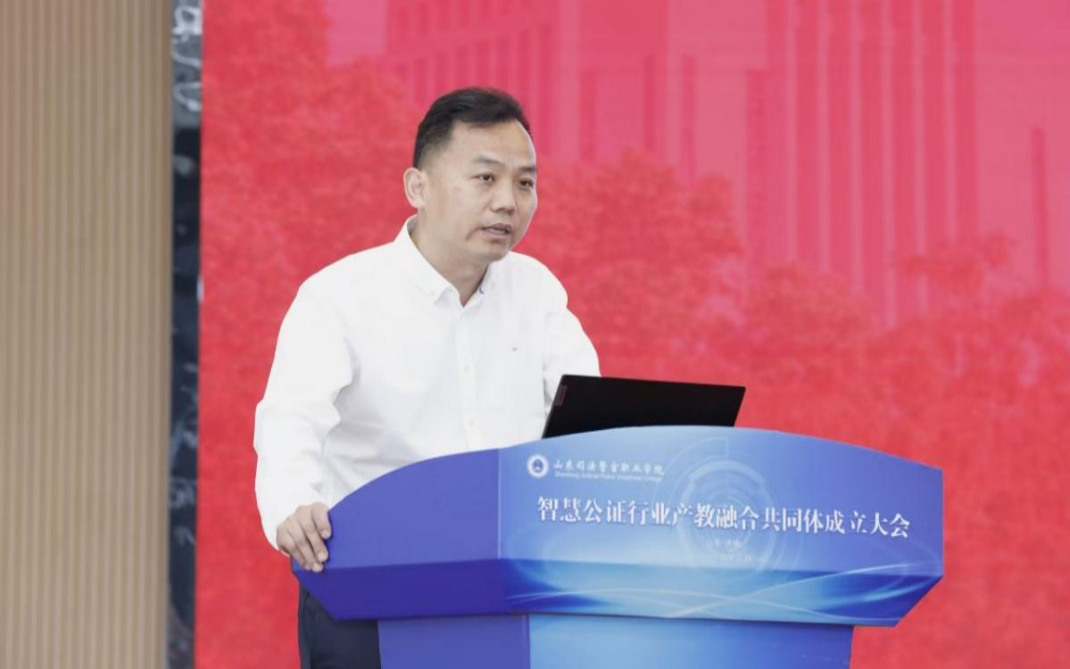 為深化產(chǎn)教融合,加強“政行企校”合作,推動公證事業(yè)高質(zhì)量發(fā)展,6月13日,由山東大學(xué)、山東司法警官職業(yè)學(xué)院、山東省濟南市齊魯公證處共同牽頭發(fā)起,全國50多家公證機構(gòu)、高校、企業(yè)、科研機構(gòu)及行業(yè)協(xié)會共同參與的智慧公證行業(yè)產(chǎn)教融合共同體成立大會在濟南舉行。