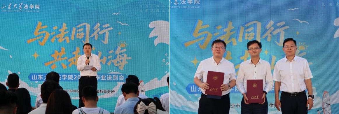 與法同行,共赴山海。6月17日,山東大學(xué)法學(xué)院2025年畢業(yè)送別會在鰲山灣畔舉行。法學(xué)院黨委書記于向明,法學(xué)院院長周長軍,北京市中倫(青島)律師事務(wù)所主任、山東大學(xué)法學(xué)院合作導(dǎo)師孫芳龍,北京市中倫(青島)律師事務(wù)所行政執(zhí)委、山東大學(xué)法學(xué)院合作導(dǎo)師、校友代表韓大更,法學(xué)院教師代表及2025屆畢業(yè)生參加活動。送別會由2024級碩士研究生王潘主持。