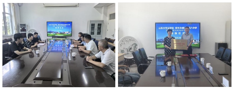 法學(xué)院師生一行參觀了嶗山區(qū)第八中學(xué)校園環(huán)境,深入了解學(xué)校特色教研成果。雙方開展專題座談,充分探討了法學(xué)專業(yè)資源賦能基礎(chǔ)教育的合作構(gòu)想,就聯(lián)手共建“黨建引領(lǐng)法德融合”雙向研學(xué)基地達(dá)成共識(shí),未來(lái)將在法治教育、社會(huì)實(shí)踐和研學(xué)課程資源庫(kù)建設(shè)等領(lǐng)域進(jìn)行深入合作。