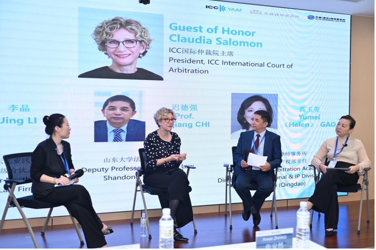 本次活動(dòng)的主題是《面向未來(lái)的國(guó)際仲裁人:能力建設(shè)、現(xiàn)實(shí)挑戰(zhàn)與成長(zhǎng)路徑》,活動(dòng)特別邀請(qǐng)了ICC國(guó)際仲裁院主席Claudia Salomon女士分享職業(yè)發(fā)展歷程與前沿洞察。法學(xué)院副教授遲德強(qiáng)、阿聯(lián)酋文森律師事務(wù)所高級(jí)合伙人李晶和齊魯(青島)律師事務(wù)所涉外&知識(shí)產(chǎn)權(quán)部主任高玉美共同作為對(duì)話嘉賓,與Claudia女士進(jìn)行了特別對(duì)話。對(duì)話圍繞多項(xiàng)議題展開(kāi),包括ICC YAAF的宗旨與職能、青年法律人參與國(guó)際商事仲裁需具備的核心技能與專業(yè)素養(yǎng)、面臨的障礙與挑戰(zhàn)、國(guó)際商事仲裁中的多元化、女性賦權(quán)與領(lǐng)導(dǎo)力、中國(guó)企業(yè)參與國(guó)際商事仲裁的趨勢(shì)以及如何在國(guó)際商事仲裁中利用AI工具等。