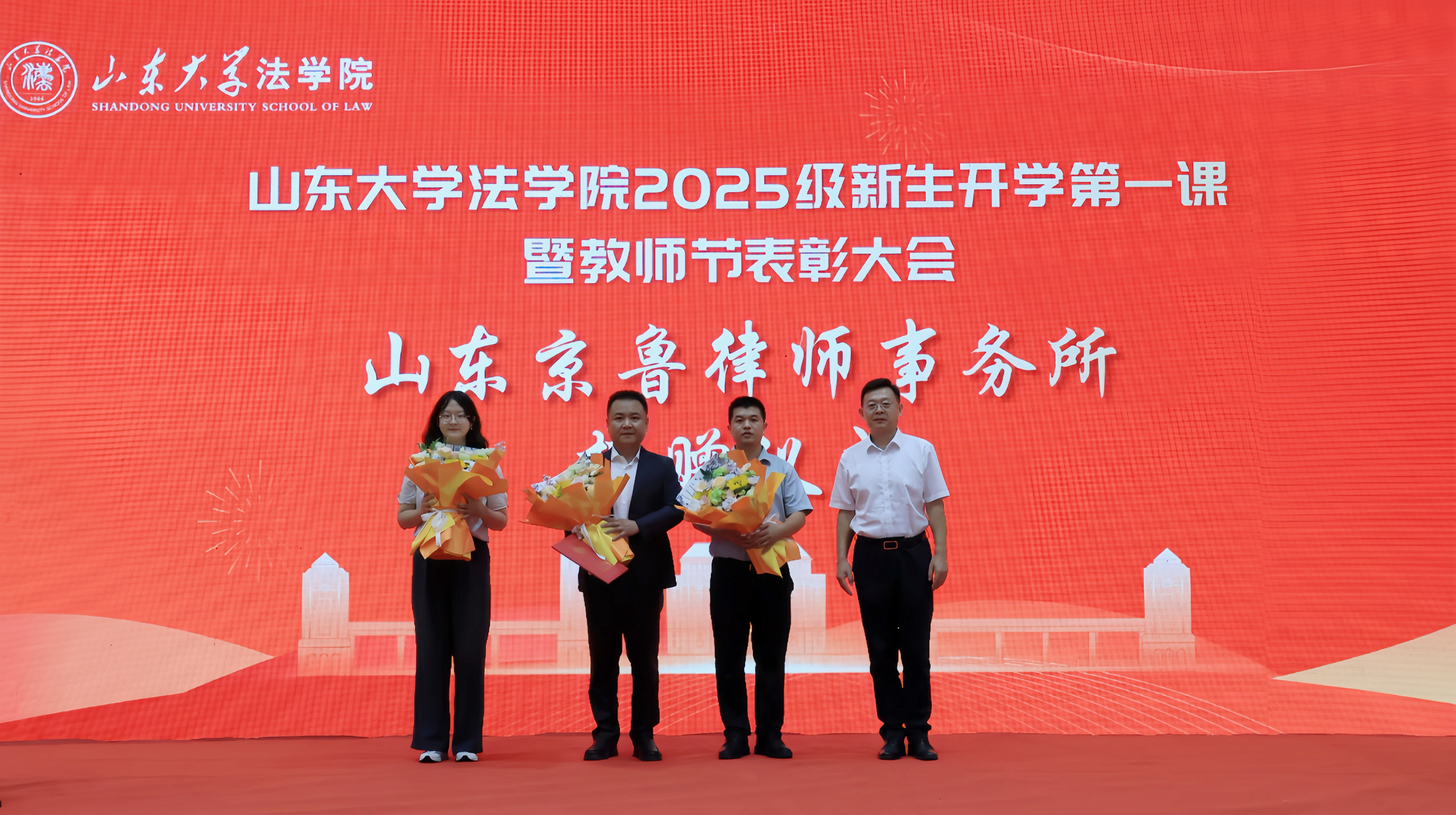 “京魯獎(jiǎng)教金”頒獎(jiǎng)環(huán)節(jié),山東京魯律師事務(wù)所創(chuàng)始合伙人劉巍宣讀2025年獲獎(jiǎng)名單并為獲獎(jiǎng)教師代表頒獎(jiǎng)。他在致辭中表示,“京魯獎(jiǎng)教金”設(shè)立的初心是為引導(dǎo)社會(huì)各界、民間資本更加關(guān)注教育,進(jìn)一步弘揚(yáng)尊師重教的優(yōu)良傳統(tǒng),同時(shí)也激勵(lì)廣大教師愛崗敬業(yè),為社會(huì)培養(yǎng)優(yōu)秀人才,實(shí)現(xiàn)“教育報(bào)國”民族復(fù)興的宏偉目標(biāo)。法學(xué)院黨委書記于向明為京魯所頒發(fā)捐贈(zèng)證書。