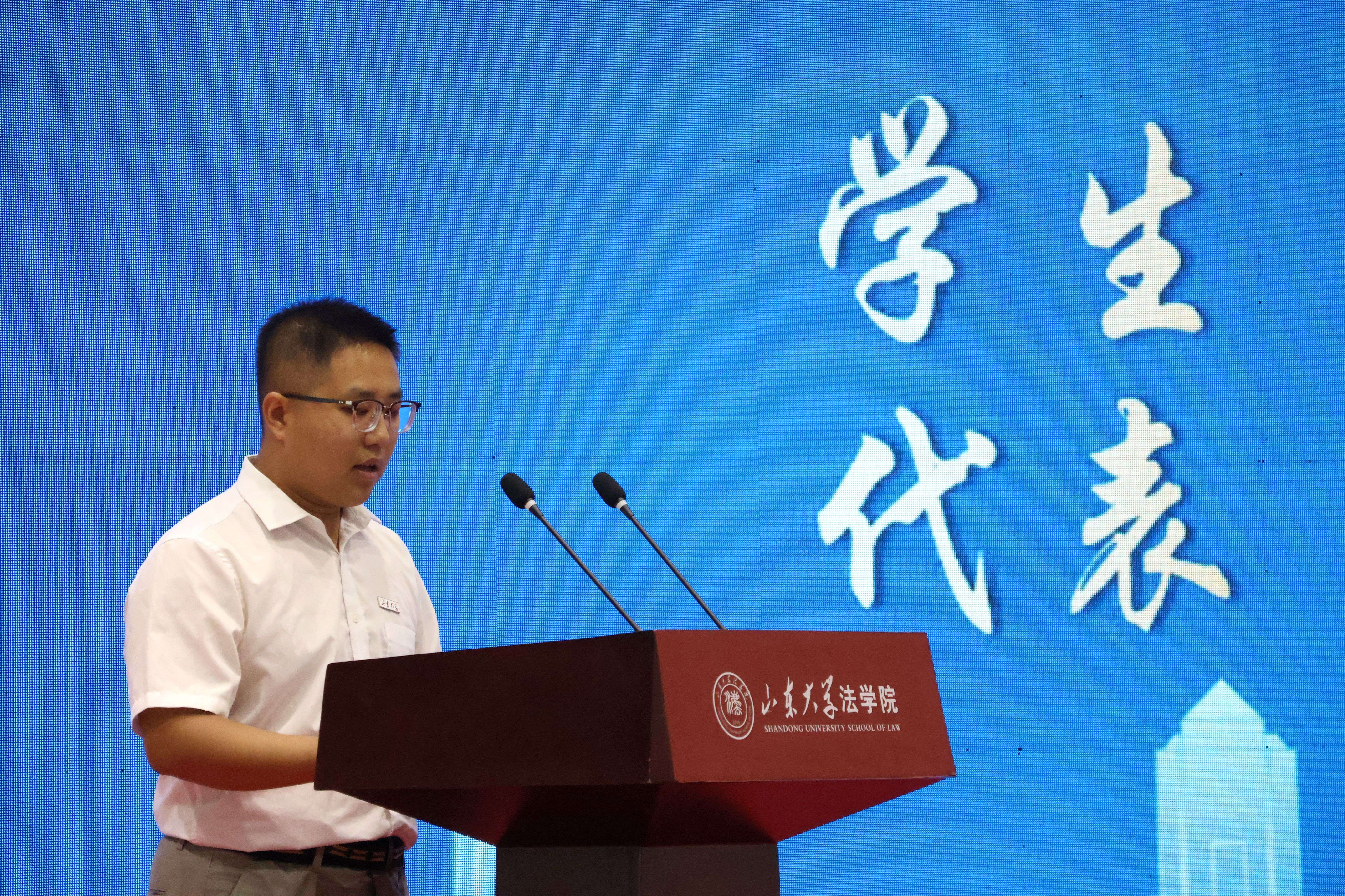 學(xué)生代表2024級(jí)碩士研究生張鵬飛在發(fā)言中分享了在山大校園生活的美好瞬間,以及從“走進(jìn)山大”到“讀懂山大”再到心懷“山大魂”的成長蛻變過程。他表示同學(xué)們應(yīng)將踐行“山大人”的責(zé)任作為歷練目標(biāo),以終為始、以行為知,在實(shí)踐與探索中求真知悟真理,向著成為更好的自己勇往直前。