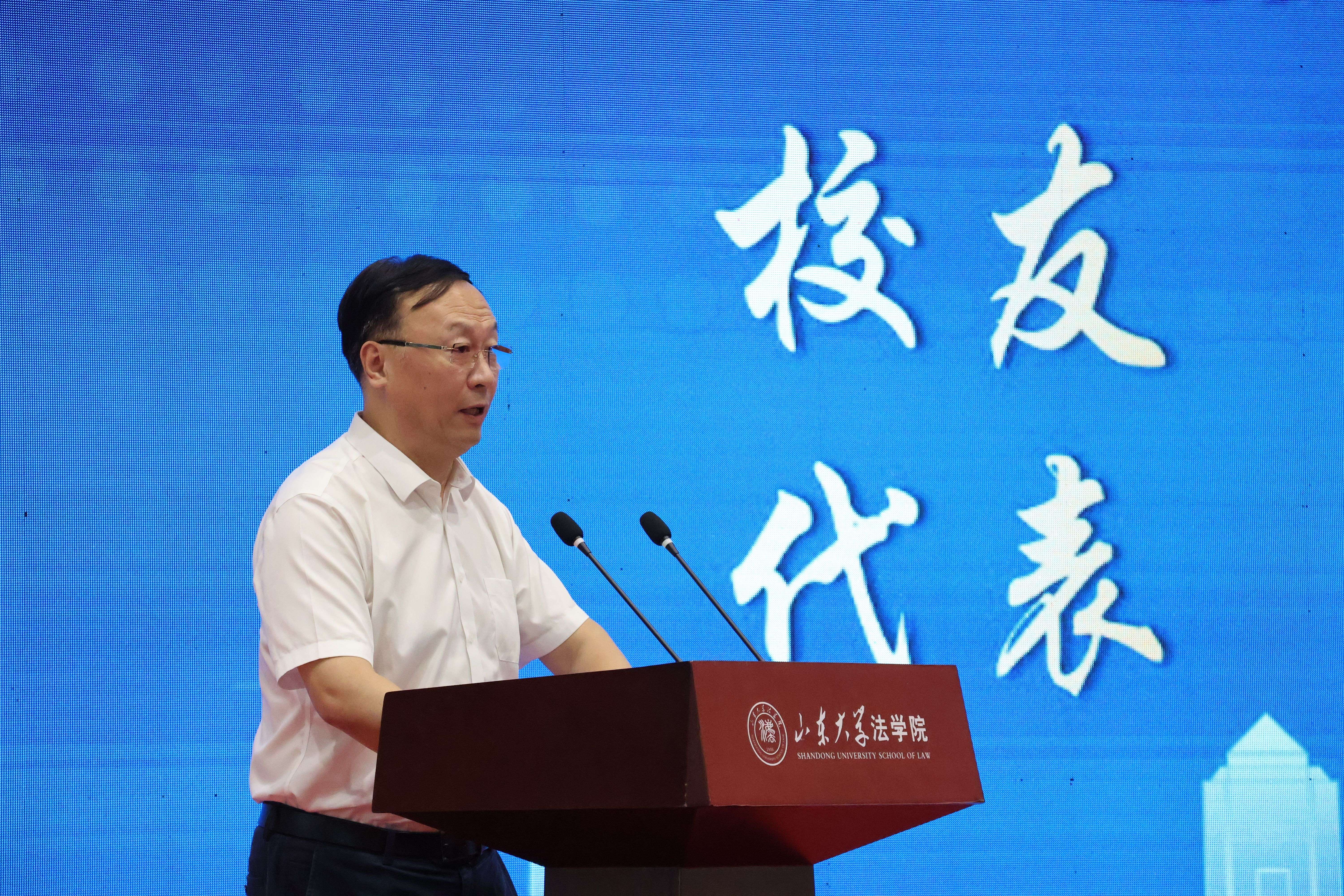 法學(xué)院1984級(jí)校友、青島市中級(jí)人民法院黨組副書記、副院長高勇作為優(yōu)秀校友代表致辭。他向新生講述了四十一年前在山大求學(xué)時(shí)的過往,并寄語新生:要博學(xué)篤思,筑牢根基,在寶貴的大學(xué)時(shí)光中培養(yǎng)堅(jiān)實(shí)的專業(yè)基礎(chǔ);要明辨慎思,恪守正道,堅(jiān)定秉持作為社會(huì)主義法律人公正的職業(yè)道德觀,將維護(hù)社會(huì)公平正義作為使命和責(zé)任;要注重實(shí)踐,學(xué)以致用,將所學(xué)知識(shí)轉(zhuǎn)化為專業(yè)技能與法律素養(yǎng),為社會(huì)主義法治事業(yè)貢獻(xiàn)力量。