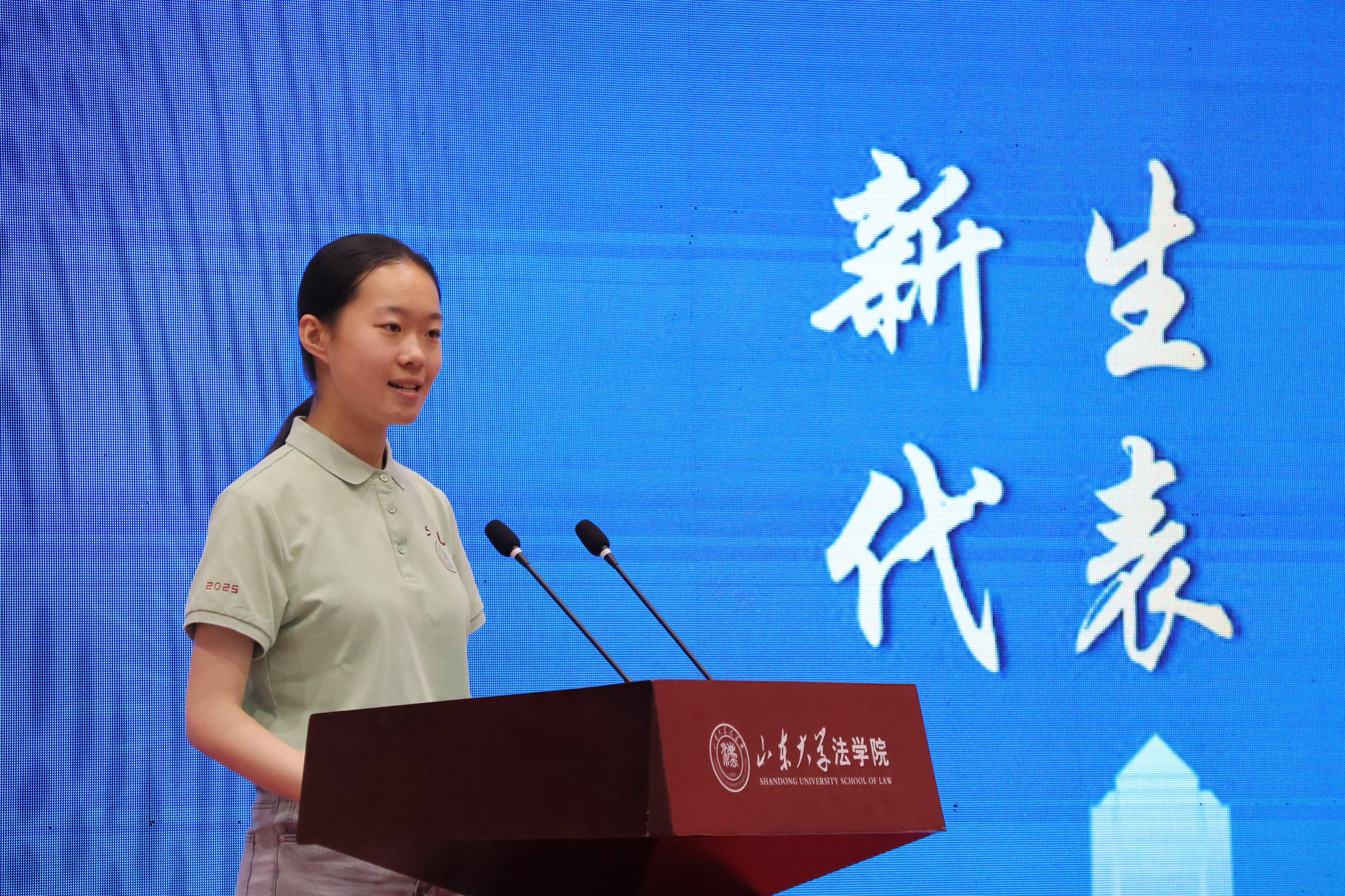 新生代表2025級(jí)本科生王小睿在發(fā)言中表示,要以山大法學(xué)院作為新起點(diǎn),在理性思辨的課堂中學(xué)習(xí)法理精髓,在著作滿藏的圖書館博覽群書,在模擬法庭鍛煉實(shí)戰(zhàn)能力,扎實(shí)打牢法學(xué)基礎(chǔ)。號(hào)召新生同學(xué)在提高自身法律素養(yǎng)的同時(shí),心懷“以法為劍,以民為心”的信念,成長為有情懷、有本領(lǐng)、有理想、有擔(dān)當(dāng)?shù)纳酱蠓扇恕?/p>
