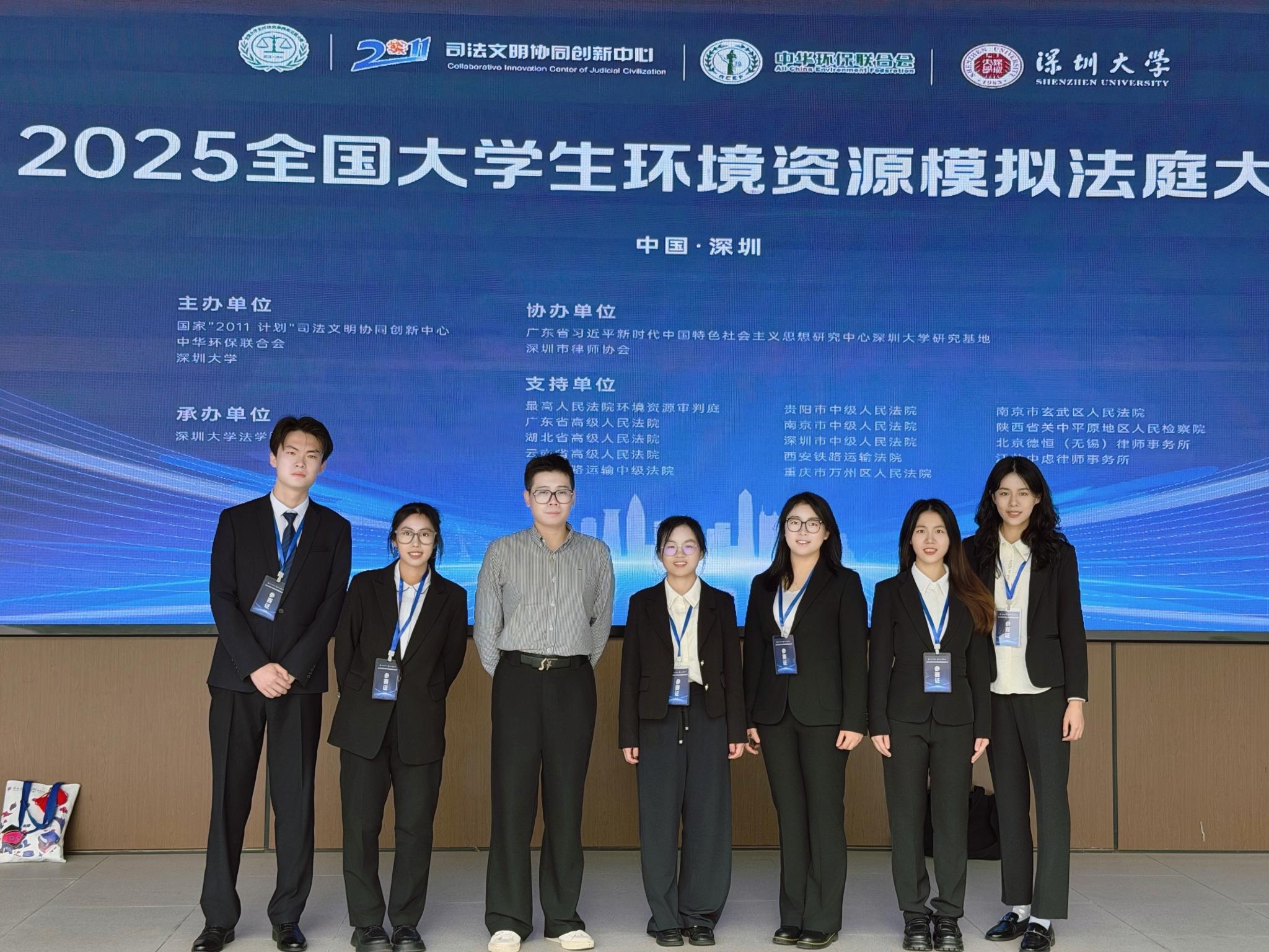 11月15日至16日,“2025全國(guó)大學(xué)生環(huán)境資源模擬法庭大賽”在深圳大學(xué)舉辦。大賽由國(guó)家“2011計(jì)劃”司法文明協(xié)同創(chuàng)新中心、中華環(huán)保聯(lián)合會(huì)、深圳大學(xué)共同主辦。本次大賽吸引了武漢大學(xué)、南開(kāi)大學(xué)、中山大學(xué)、天津大學(xué)等全國(guó)各地共63所高校參與。我院代表隊(duì)由2024級(jí)碩士研究生任婷潔、高佳夢(mèng)、劉雨菲、李昊宇、孟雨菲、張明潔六名選手組成庭辯隊(duì)伍,王盛航老師擔(dān)任指導(dǎo)老師。決賽階段在深圳大學(xué)進(jìn)行,經(jīng)過(guò)兩天的激烈角逐,山東大學(xué)代表隊(duì)獲得三等獎(jiǎng),孟雨菲獲大賽“優(yōu)秀選手獎(jiǎng)”,王盛航獲“優(yōu)秀指導(dǎo)教師獎(jiǎng)”。