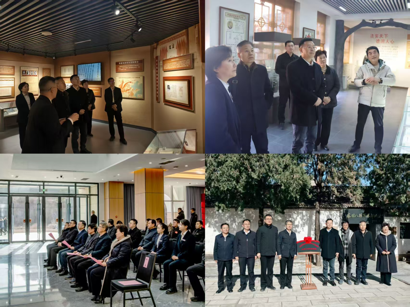 11月25日至26日,調(diào)研組赴晉中市中級(jí)人民法院、祁縣人民法院,參觀山西抗日根據(jù)地司法檔案文獻(xiàn)選展和法治文化展館,深入了解晉察冀、晉冀魯豫、晉綏三大抗日根據(jù)地的司法實(shí)踐,深刻感悟中國共產(chǎn)黨領(lǐng)導(dǎo)下的邊區(qū)政府在法治建設(shè)中進(jìn)行的艱辛探索與取得的突出成就。晉中市法院黨組書記、院長原占斌,副院長李宏麗,祁縣法院安喜頻院長,左權(quán)縣委書記石勇,左權(quán)縣委常委、政法委書記曹峰云,左權(quán)法院黨組書記、院長韓勇等陪同調(diào)研。調(diào)研組在桐峪1941培訓(xùn)中心、麻田八路軍總部舊址掛牌設(shè)立“人民司法優(yōu)良傳統(tǒng)教學(xué)實(shí)踐基地”。