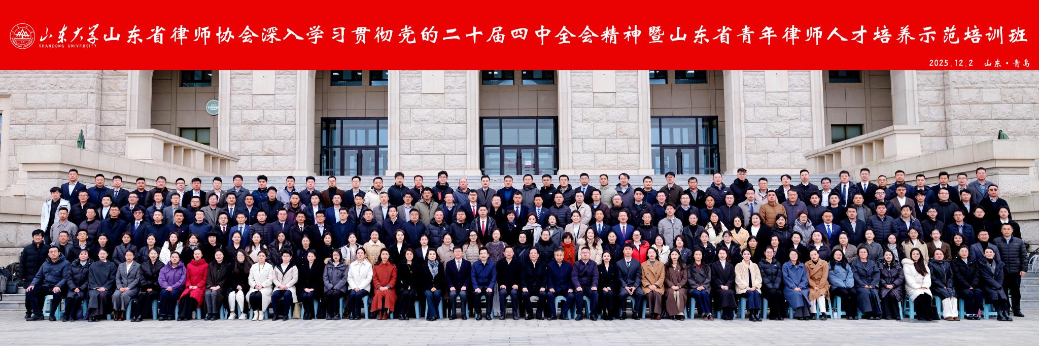 2025年12月2日,山東省律師協(xié)會(huì)深入學(xué)習(xí)貫徹黨的二十屆四中全會(huì)精神暨山東省青年律師人才培養(yǎng)示范培訓(xùn)班開(kāi)班儀式在山東大學(xué)青島校區(qū)舉行。山東省司法廳律師工作處處長(zhǎng)、山東省律師行業(yè)黨委副書(shū)記、省律師協(xié)會(huì)秘書(shū)長(zhǎng)劉玉國(guó),山東大學(xué)法學(xué)院黨委書(shū)記于向明,山東省律師協(xié)會(huì)副會(huì)長(zhǎng)闞吉峰出席開(kāi)班儀式,儀式由法學(xué)院院務(wù)委員會(huì)常務(wù)副主任齊向東主持。