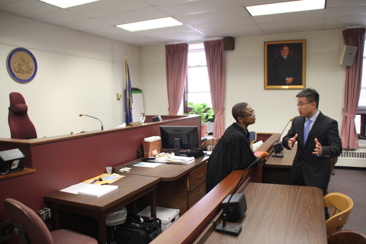 圖:在費(fèi)城市政廳民事法庭與法官交流
