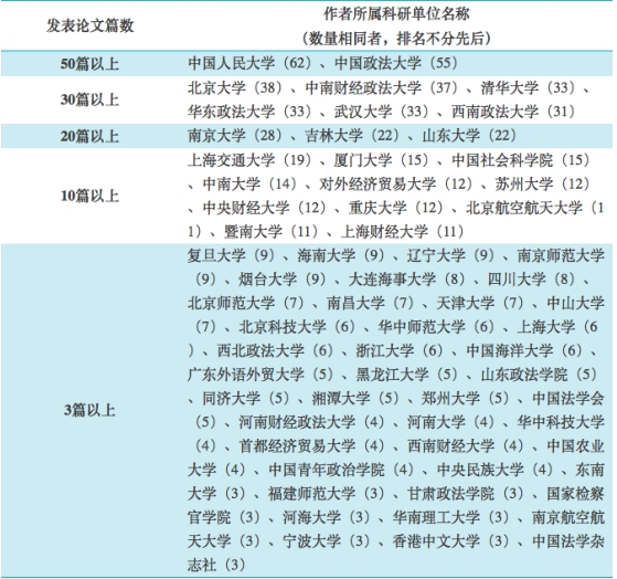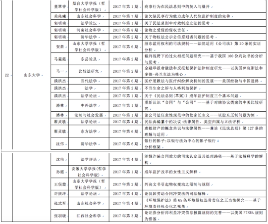 其中山東大學法學院以22篇的成績,排名全國前十。