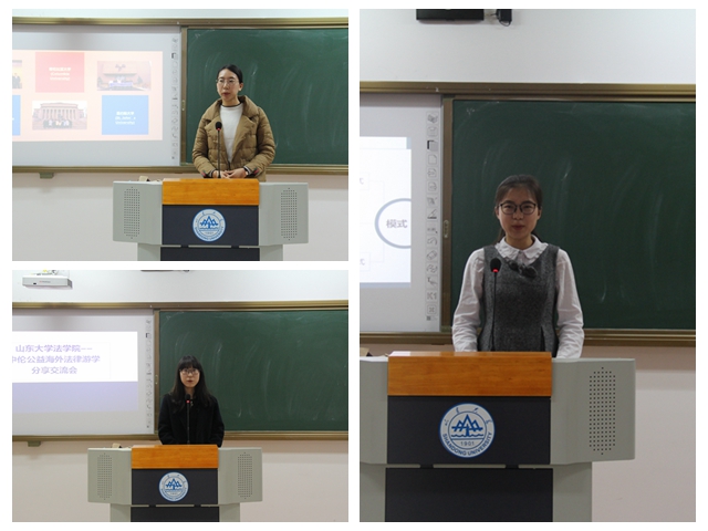 3月7日下午,“山東大學(xué)法學(xué)院—中倫公益海外法律游學(xué)”分享交流會在青島校區(qū)成功舉辦。曲光毅、于文菊、李琳璇、趙藝璇、黃彥萌等五名游學(xué)團(tuán)隊(duì)成員與帶隊(duì)教師鄒永厚將他們在寒假期間和北京大學(xué)法學(xué)院、南開大學(xué)法學(xué)院的同學(xué)們一起赴美國東西兩岸參加游學(xué)活動的所見所聞與法學(xué)院同學(xué)們進(jìn)行了分享。法學(xué)院院長沈偉教授、北京市中倫律師事務(wù)所(青島)合伙人孫芳龍主任出席了交流會。