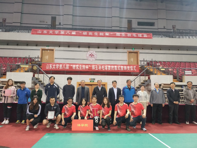 4月13日-15日,山東大學(xué)第八屆“研究生院杯”師生羽毛球賽在中心校區(qū)激烈開賽,法學(xué)院派出了由張晏瑲、李長勇、徐偉敏、曲儀四位老師和李茜博、朱云霄、伍方之、龐淑帆四位研究生組成的師生代表隊(duì),經(jīng)過頑強(qiáng)拼搏,在30余支參賽隊(duì)伍中獲得第五名的好成績。