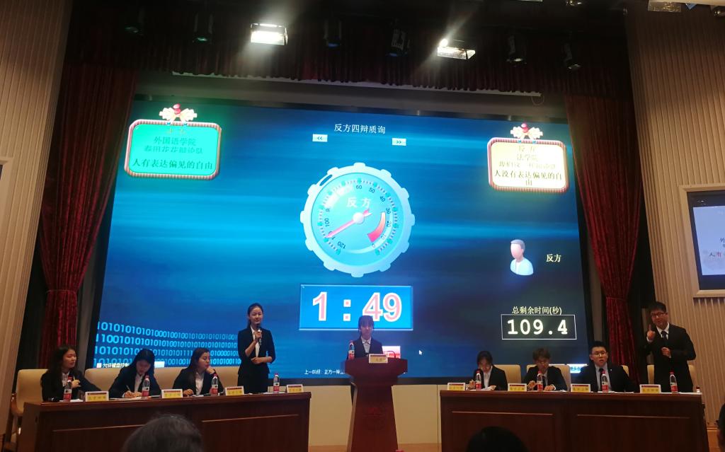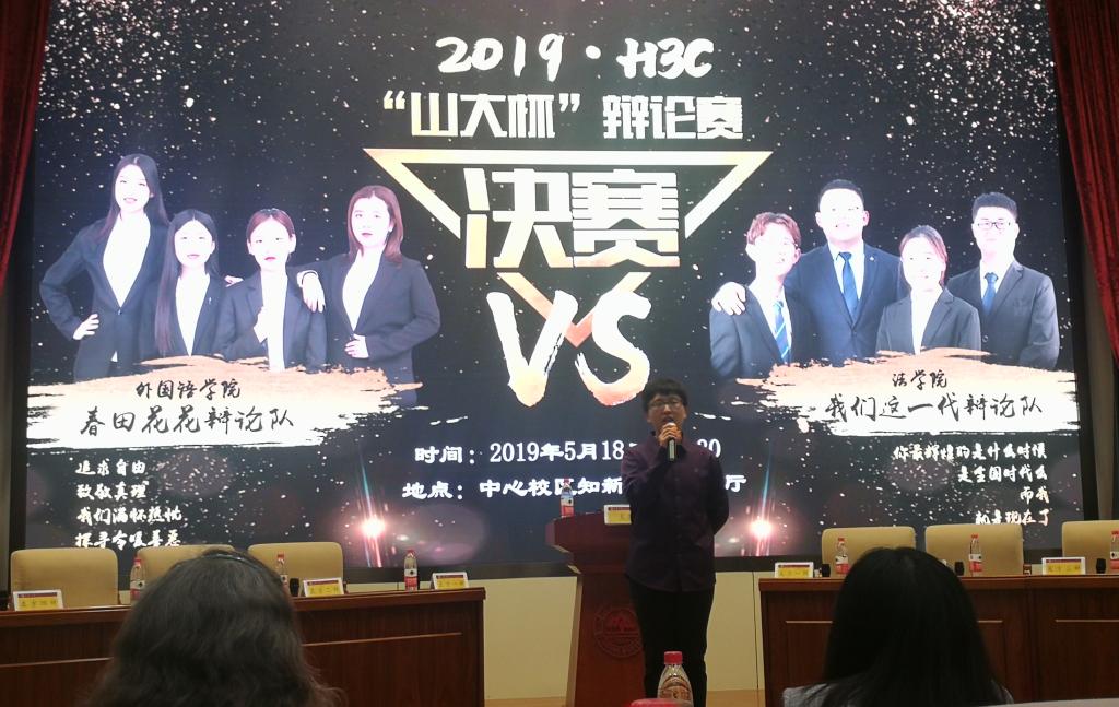 5月18日晚,山東大學(xué)第二十屆“山大杯”辯論賽總決賽在中心校區(qū)知新樓舉辦,法學(xué)院辯論隊(duì)迎戰(zhàn)外國語學(xué)院辯論隊(duì)。新聞傳播學(xué)院俞凡老師、物理學(xué)院顏世申老師、土建與水利學(xué)院谷健輝老師,以及來自武漢大學(xué)辯論隊(duì)的優(yōu)秀辯手張琪和武漢大學(xué)前辯論隊(duì)隊(duì)長彭飛宇擔(dān)任評委。山東大學(xué)團(tuán)委副書記李一楠、外國語學(xué)院黨委副書記魏魯鴻、法學(xué)院黨委副書記王苗雨等出席辯論賽。
