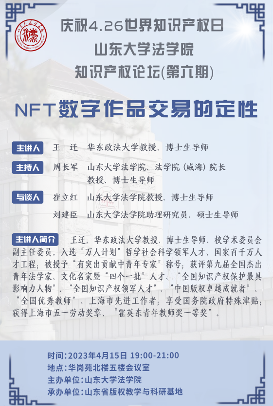 講座預(yù)告 | 山東大學(xué)法學(xué)院知識(shí)產(chǎn)權(quán)論壇(第六期):NFT數(shù)字作品交易的定性