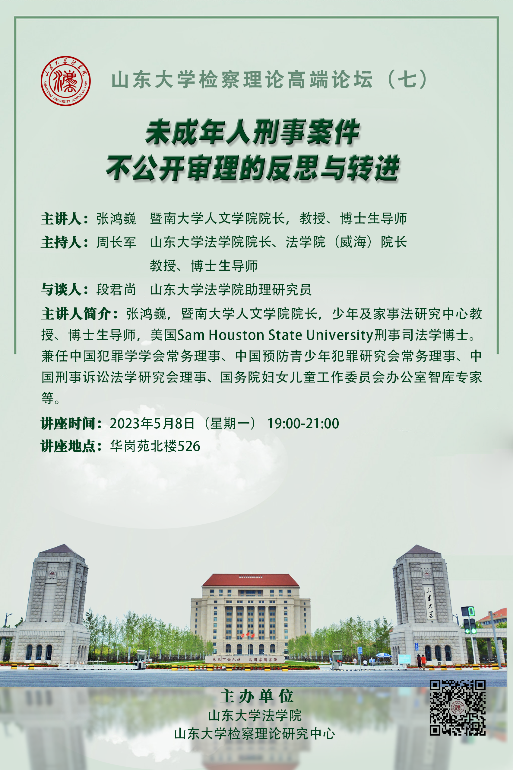 講座預告 | 山東大學檢察理論高端論壇(七):未成年人刑事案件不公開審理的反思與轉(zhuǎn)進