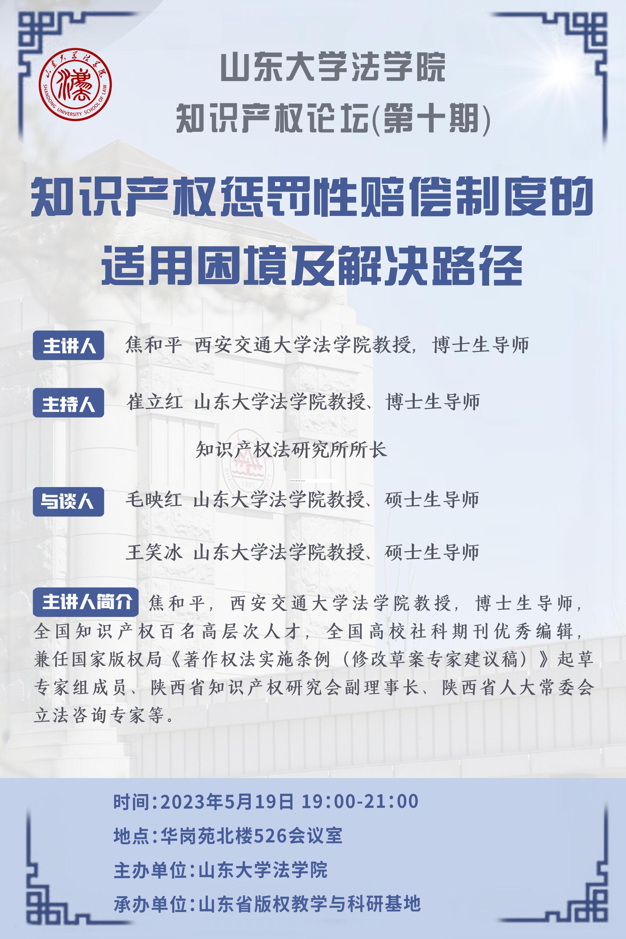 講座預(yù)告 | 山東大學(xué)法學(xué)院知識產(chǎn)權(quán)論壇(第十期):知識產(chǎn)權(quán)懲罰性賠償制度的適用困境及解決路徑
