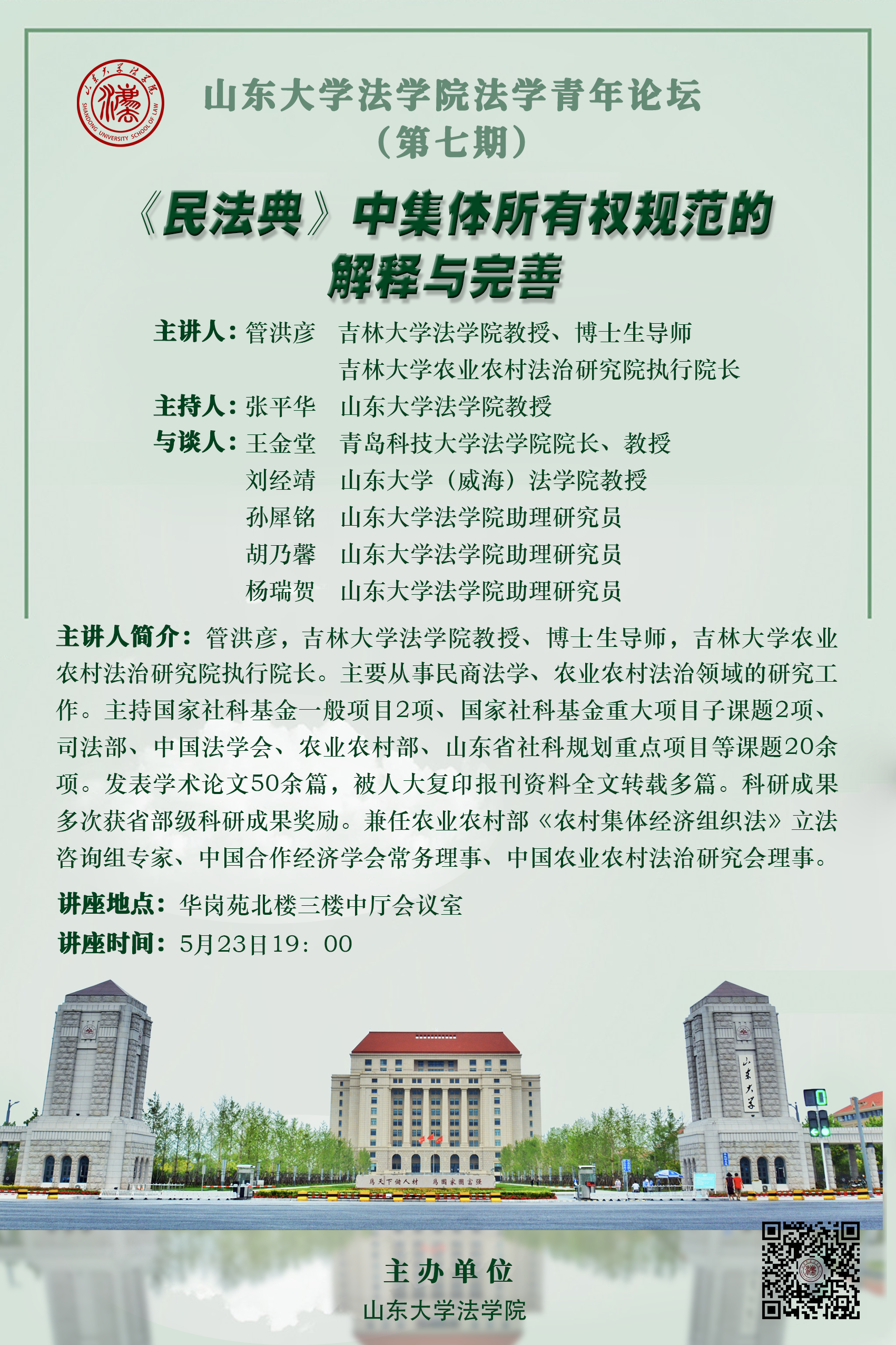講座預(yù)告 | 山東大學(xué)法學(xué)院青年論壇(第七期):《民法典》中集體所有權(quán)規(guī)范的解釋與完善