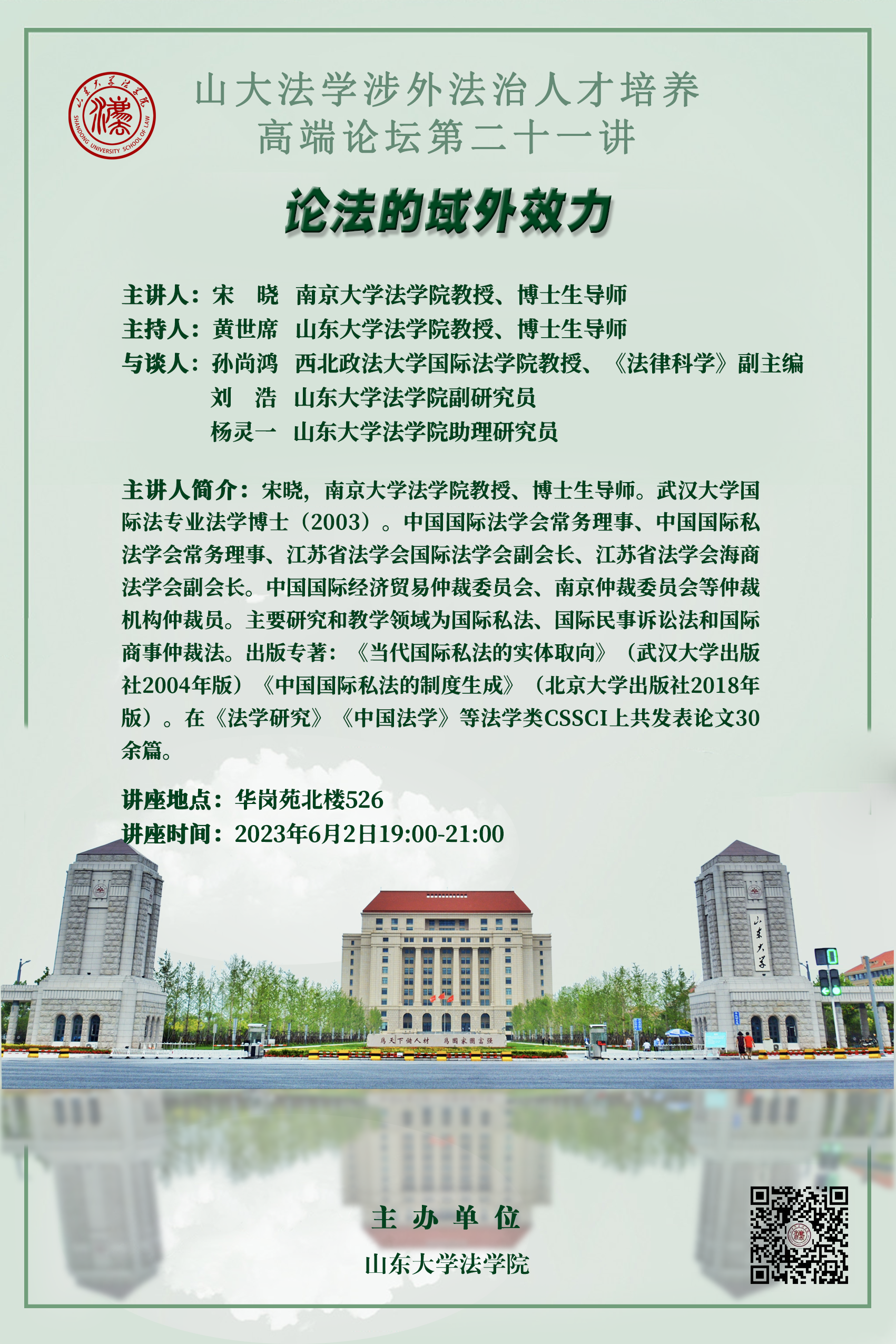 講座預(yù)告 | 山大法學(xué)涉外法治人才培養(yǎng)高端論壇第二十一講:論法的域外效力