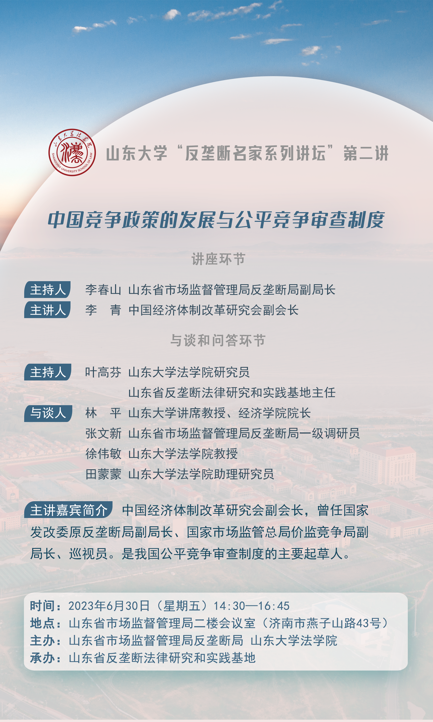 講座預(yù)告 | 山東大學(xué)“反壟斷名家系列講壇”第二講:中國競爭政策的發(fā)展與公平競爭審查制度